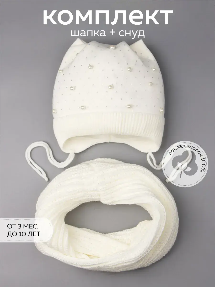 Шапка для девочки на завязках и снуд от бренда Ok Top - это идеальный базовый комплект на осень и теплую зиму. Модель подойдет для малышек от трех месяцев до десяти лет. Демисезонный головной убор декорирован стразами, бусинами и ушками, что непременно добавит нежности образу маленькой принцессы! Теплый набор рассчитан на температурный режим от 0 до -5С. Шапка детская дополнена подкладкой из натурального хлопка, благодаря чему голова малыша не будет потеть, а находиться в ней во время прогулок будет комфортно. Модель отлично сочетается с любым гардеробом юной модницы! Приятная на ощупь осенняя шапочка обладает хорошей эластичностью, но при этом не растягивается после долгой носки. Мягкие завязки прекрасно фиксируют, не оставляя следов на коже. Снуд для девочки хорошо тянется и легко надевается в два оборота под капюшон верхней одежды. Вязаный комплект детский подходит для активного отдыха на свежем воздухе, а также для повседневной носки в детский сад и школу. Для того, чтобы изделие радовало Вас дольше, мы рекомендуем бережную стирку при t не более 30С.