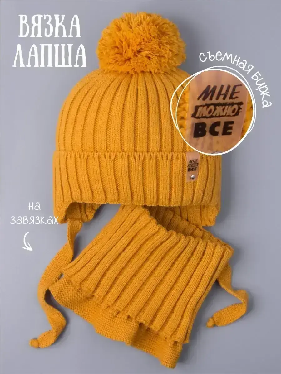 Шапка детская демисезонная со снудом от бренда Ok Top - это идеальный вариант на осень и на теплую зиму. Головной убор подойдет к любому гардеробу ребенка. Декорирована осенняя вязаная шапочка съемной биркой с надписью "Мне можно все", которую на время ухода за изделием можно легко отстегнуть. Данная модель сочетается с любым видом верхней одежды и стильно дополняет образ. Шапка на осень снабжена хлопковой подкладкой, которая не дает голове ребенка вспотеть, а значит снижает риск простудиться. Широкие завязки оптимальной длины без труда завязываются в бант. Плотный отворот надежно защищает уши и шею малыша от холода ветра. Вязаный снуд отлично тянется и его без труда можно носить под капюшоном верхней одежды. Шарф детский очень мягкий, не колется и раздражает кожу. Большой размерный ряд позволит Вам выбрать комплект для детей от двух до десяти лет, что делает эту шапку универсальным решением для школы и детского сада.
