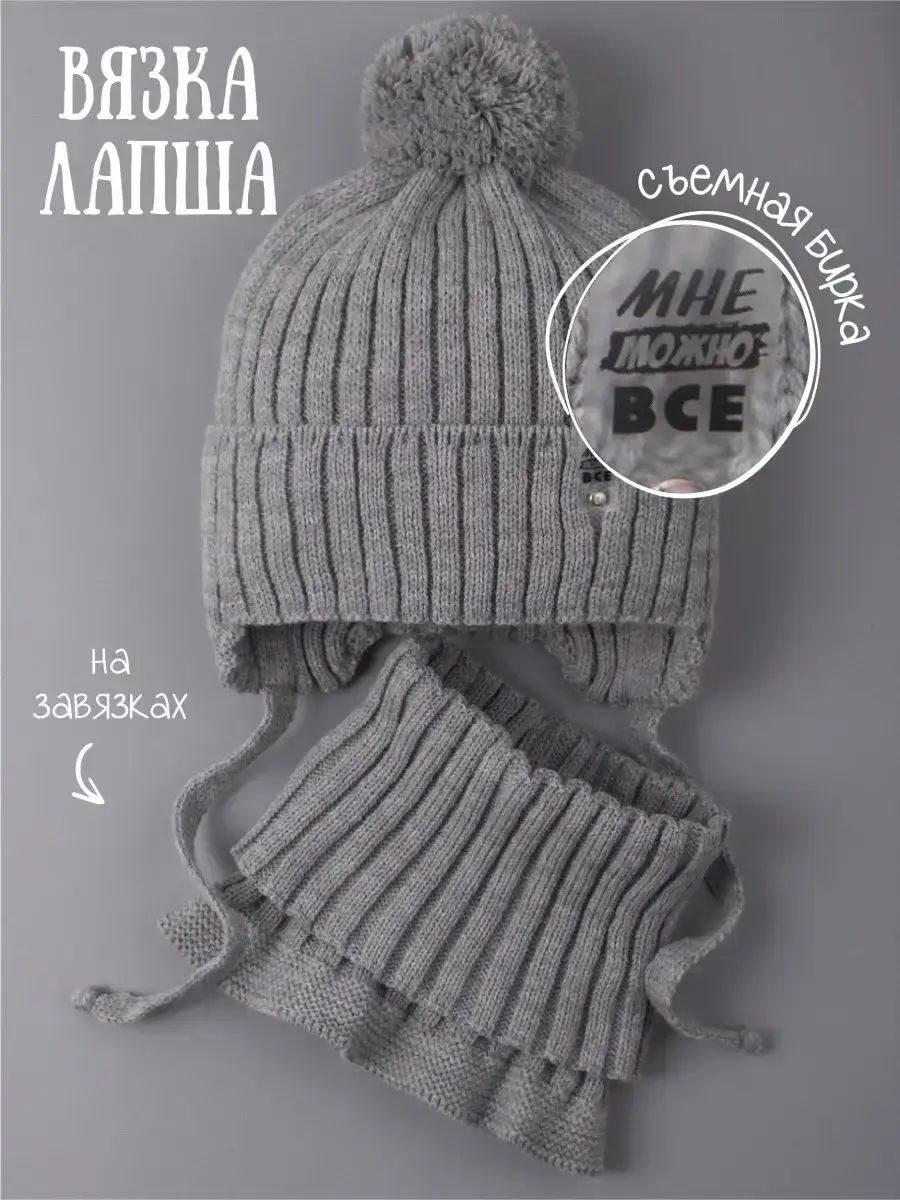 Шапка детская демисезонная со снудом от бренда Ok Top - это идеальный вариант на осень и на теплую зиму. Головной убор подойдет к любому гардеробу ребенка. Декорирована осенняя вязаная шапочка съемной биркой с надписью "Мне можно все", которую на время ухода за изделием можно легко отстегнуть. Данная модель сочетается с любым видом верхней одежды и стильно дополняет образ. Шапка на осень снабжена хлопковой подкладкой, которая не дает голове ребенка вспотеть, а значит снижает риск простудиться. Широкие завязки оптимальной длины без труда завязываются в бант. Плотный отворот надежно защищает уши и шею малыша от холода ветра. Вязаный снуд отлично тянется и его без труда можно носить под капюшоном верхней одежды. Шарф детский очень мягкий, не колется и раздражает кожу. Большой размерный ряд позволит Вам выбрать комплект для детей от двух до десяти лет, что делает эту шапку универсальным решением для школы и детского сада.