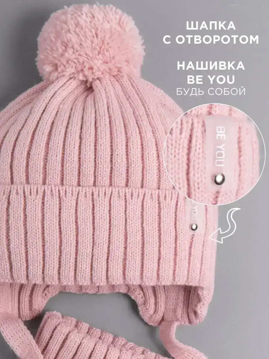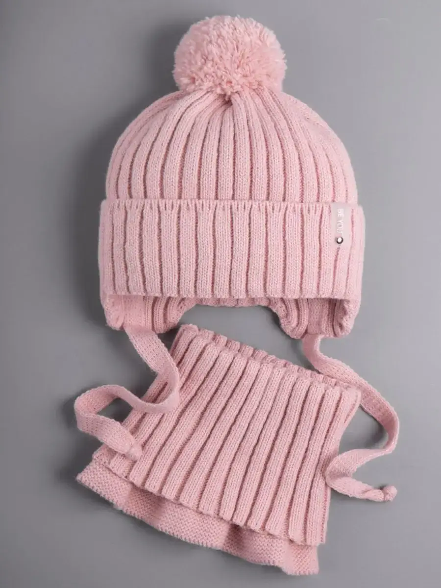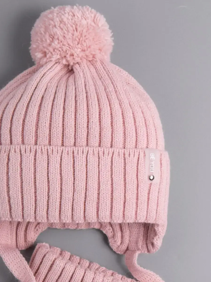 Детская вязаная шапочка на завязках с помпоном — идеальный выбор для малышей в прохладное время года!