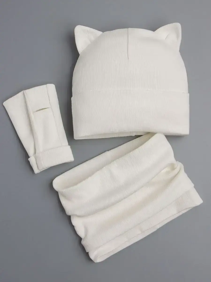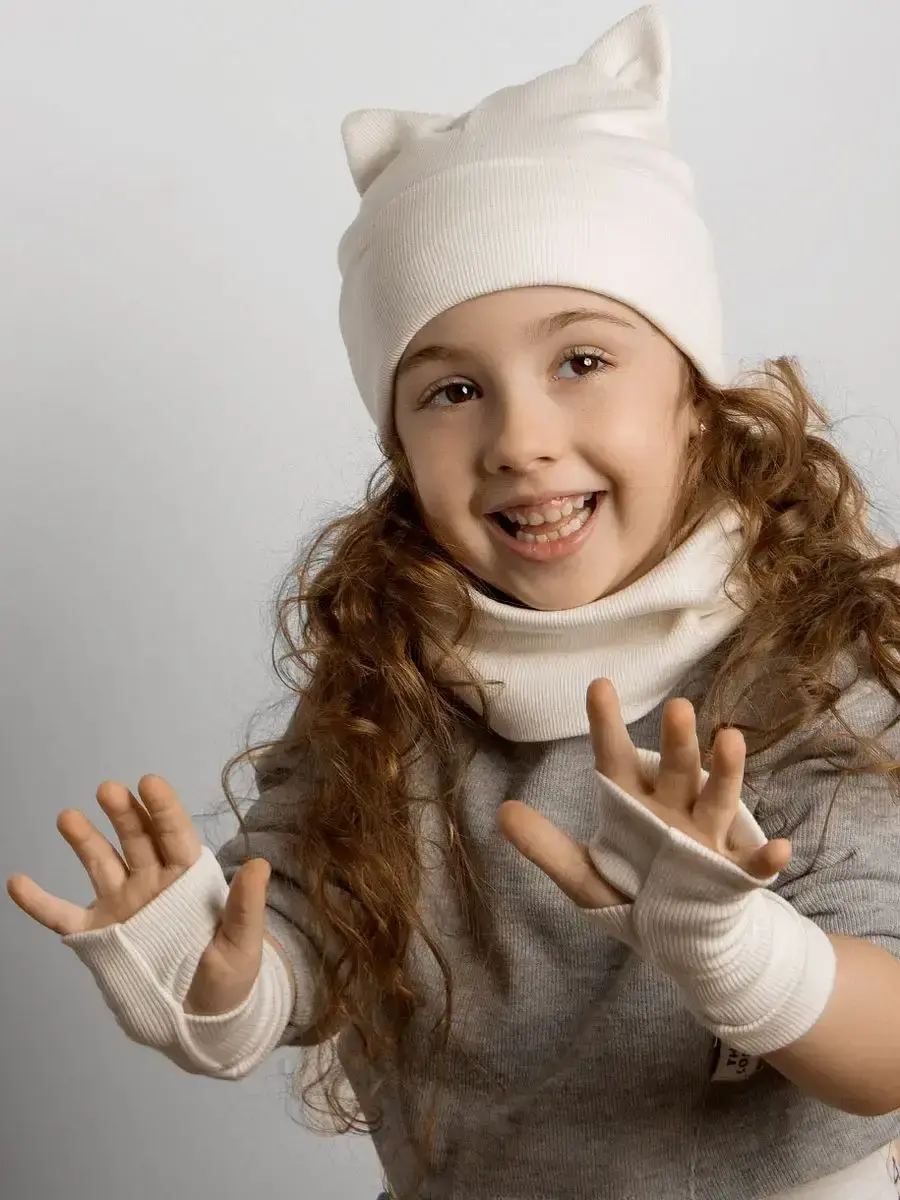 Шапка осенняя для девочки с ушками, снудом и митенками – это стильный и уютный вариант на осень и теплую зиму для вашего малыша! Хотите, чтобы ваш ребенок чувствовал себя комфортно и стильно в любую погоду? Тогда этот комплект шапка с ушками, снуд и митенки - идеальный вариант для вас! Демисезонная шапка с ушками для девочки из мягкого и приятного к телу трикотажа отлично защитит от ветра и холода в переходные периоды года. Широкий отворот закрывает уши и не дает холоду проникнуть, а ушки придают образу малыша особую милость и очарование.