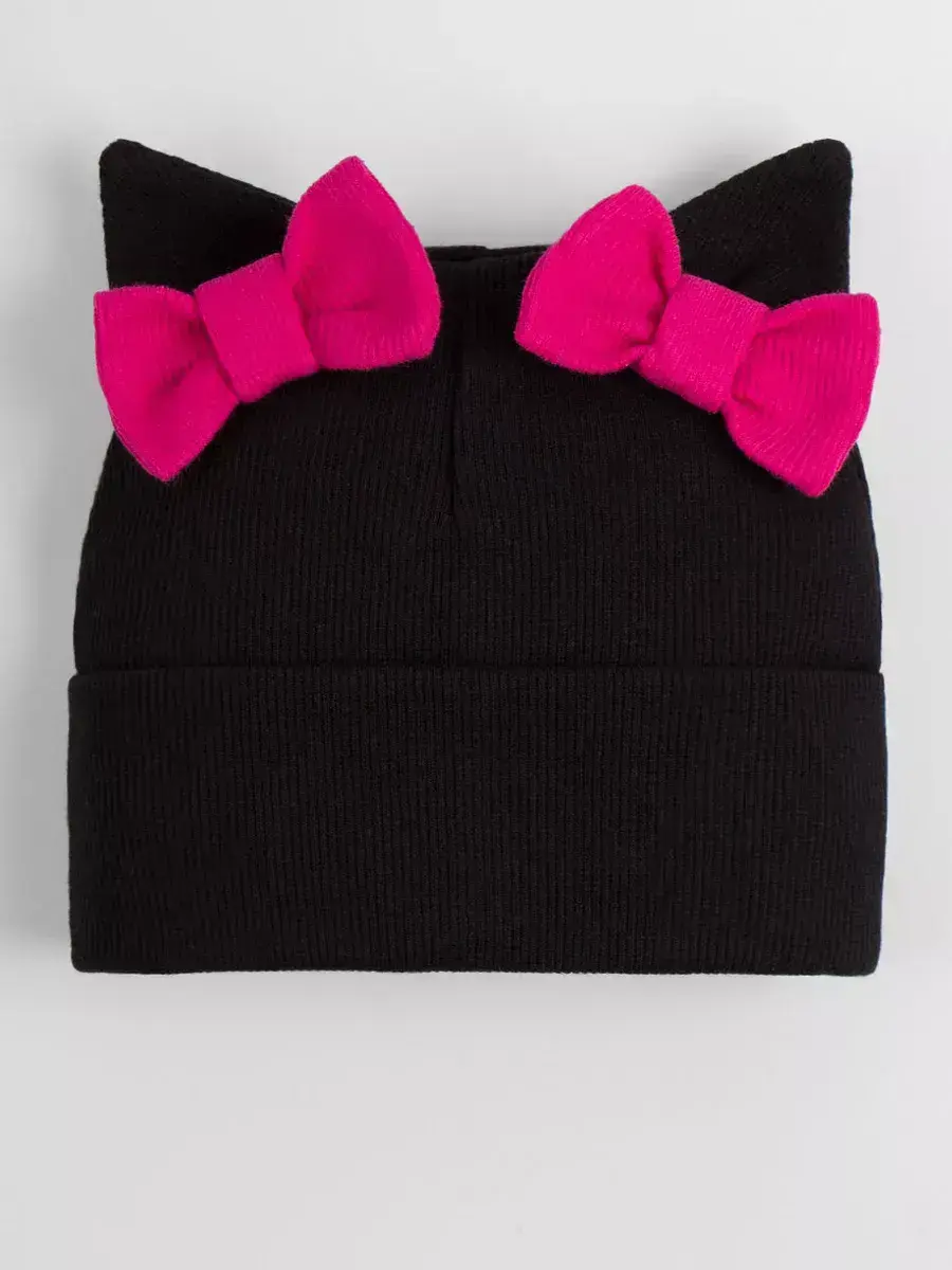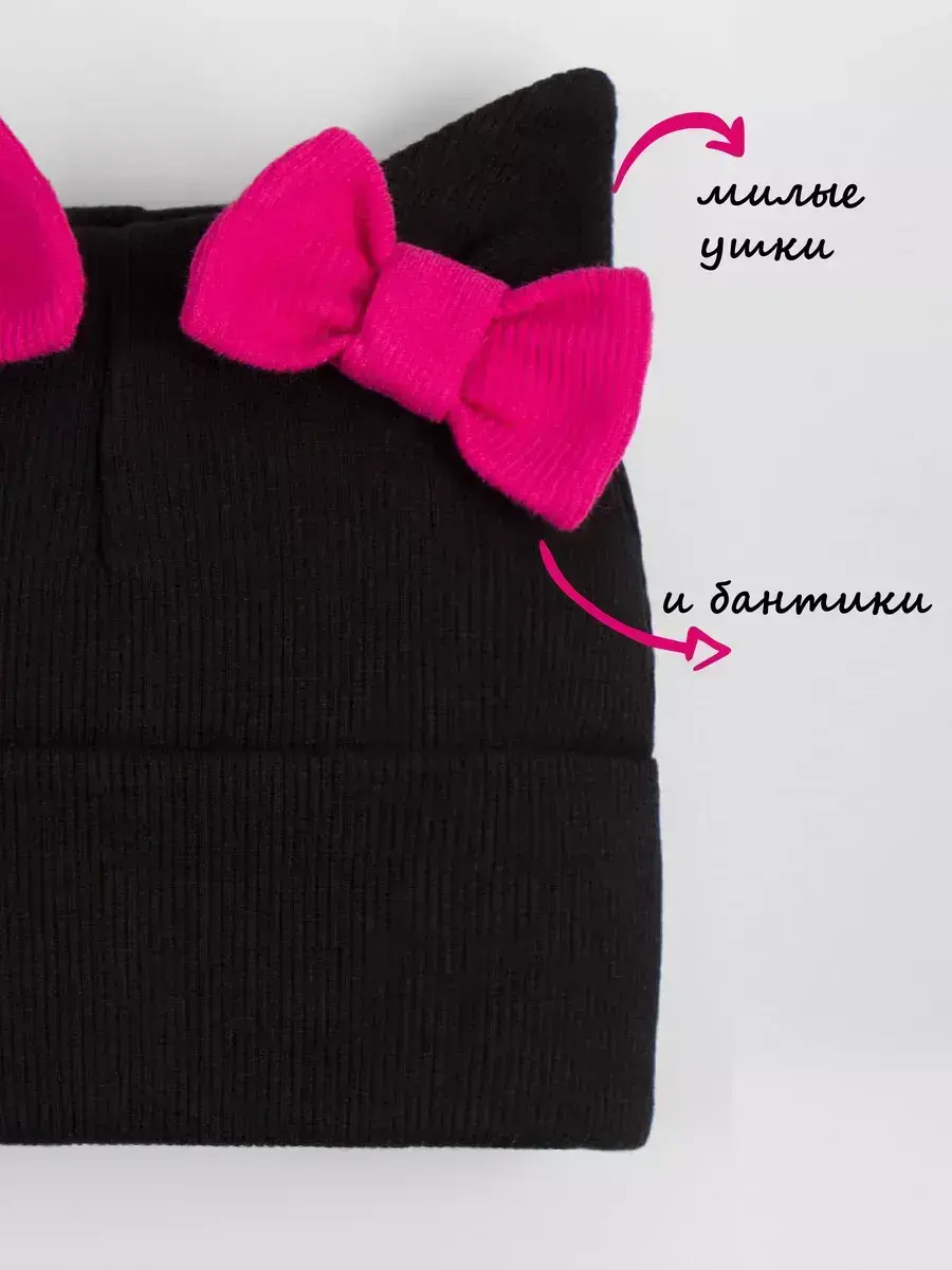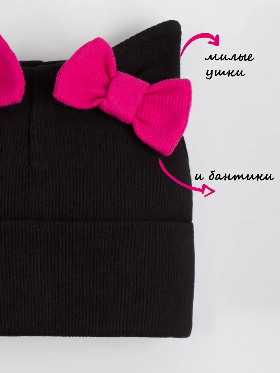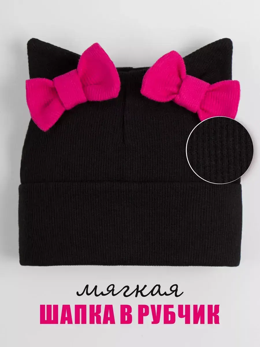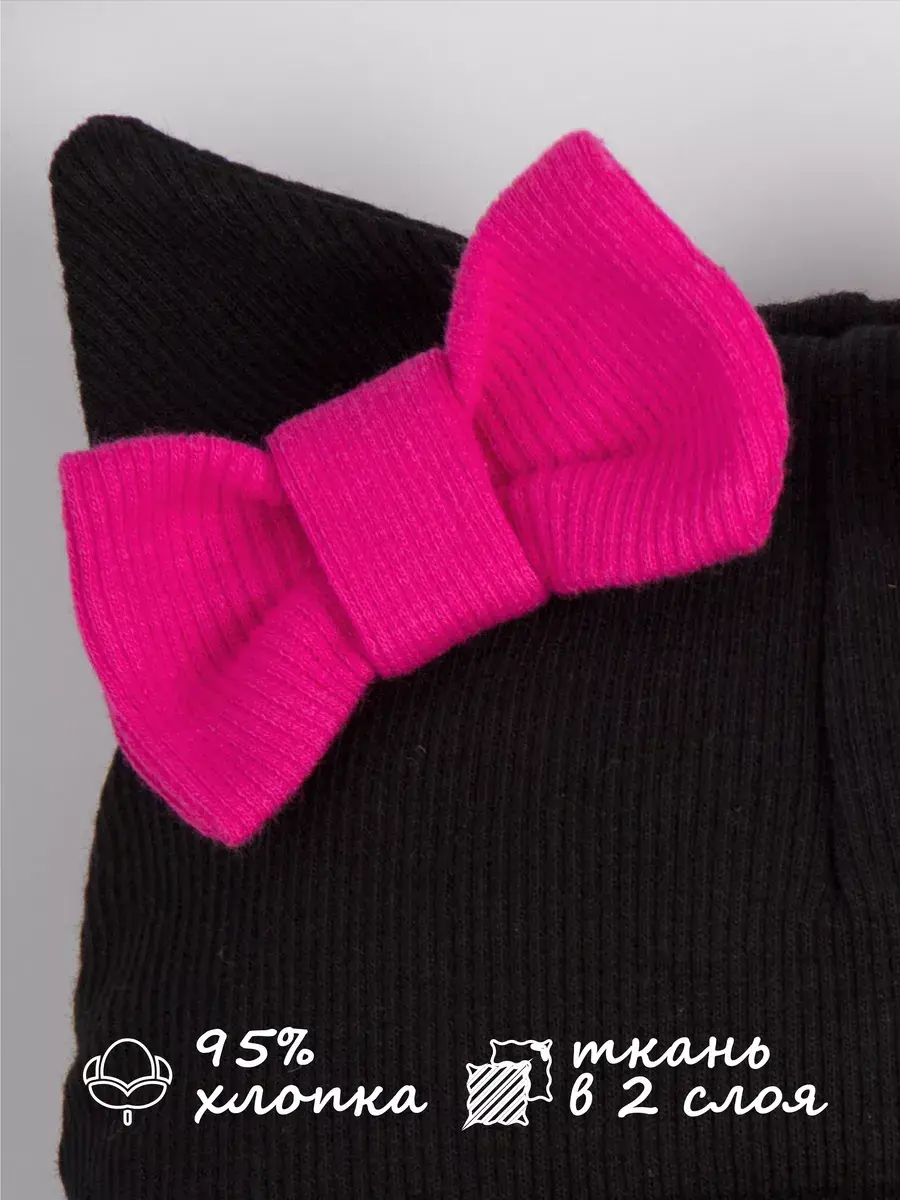 Шапка для девочки осенняя выполнена в нежном стиле: украшена милыми бантиками и ушками котика, она радует не только теплом, но и эстетикой. Материал — мягкий трикотаж в технике «в рубчик», который хорошо держит форму, не растягивается и не теряет вид даже после многократных стирок. Модель имеет широкий отворот, позволяющий регулировать посадку шапки по глубине — удобно и практично для активных детей.