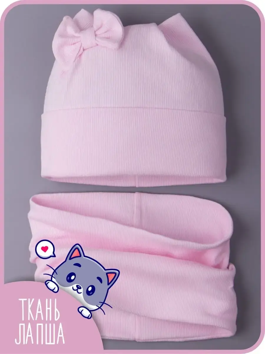 Шапка,ушки,кашкорсе,бантик+снуд00-0028727