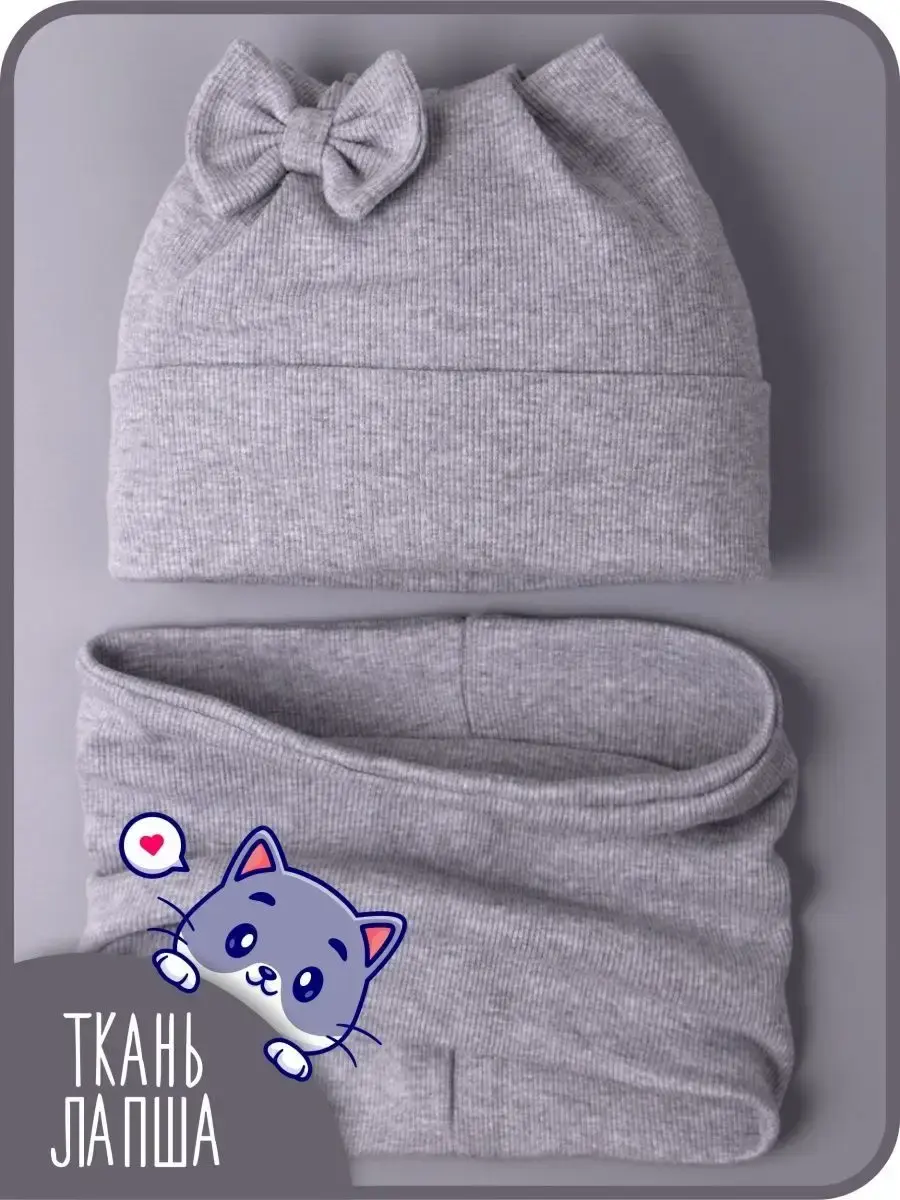 Шапка,ушки,кашкорсе,бантик+снуд00-0028802