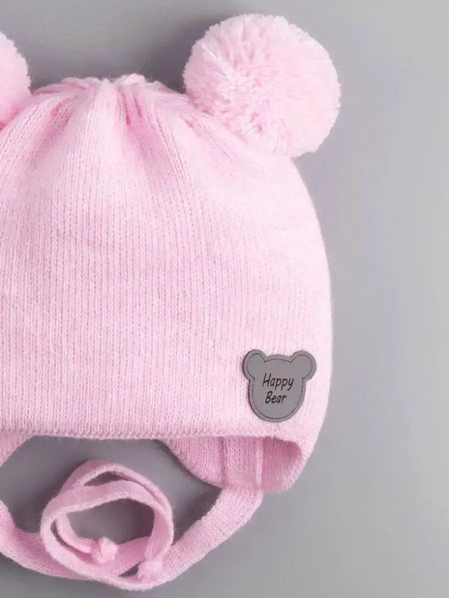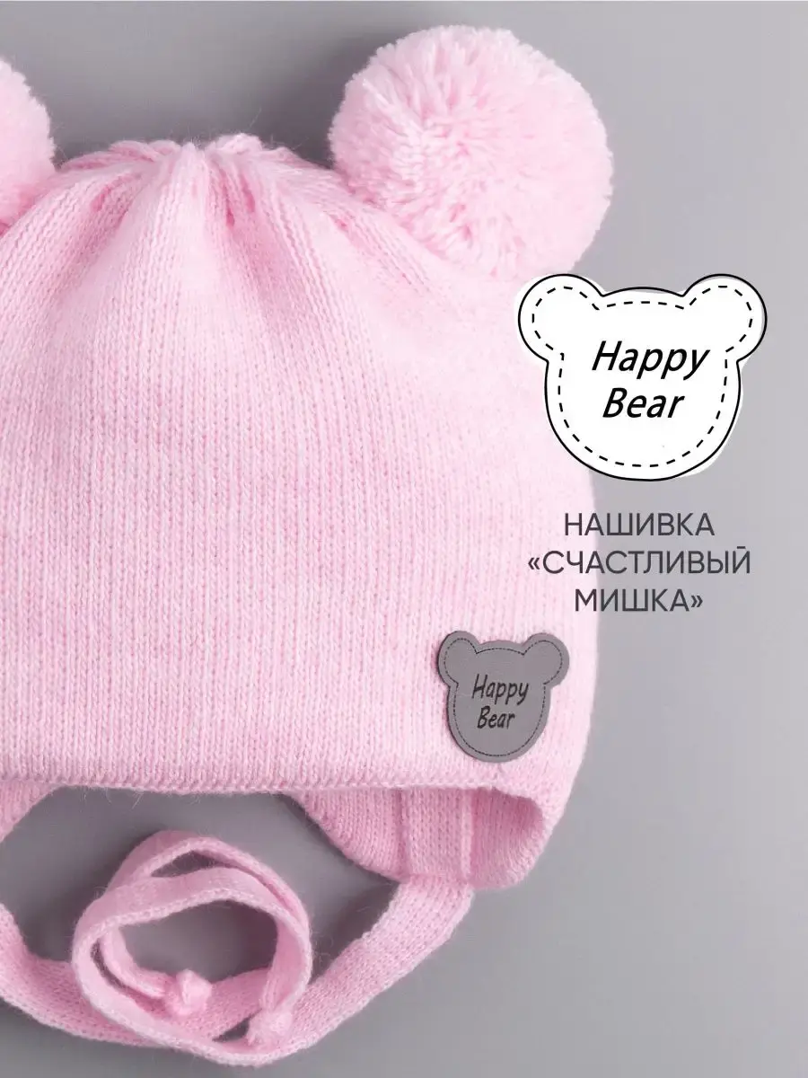 Вязаная демисезонная детская шапка на завязках — лучшее решение на осень и теплую зиму для вашего ребёнка. Детская шапка не только защитит от холода и ветра, но и станет красивым дополнением стильного образа! Модель с двумя помпонами подойдет как мальчику, так и девочке благодаря большому выбору расцветок. Широкий размерный ряд поможет выбрать демисезонную шапочку для детей от одного месяца до десяти лет. Отличный вариант на выписку для новорожденных. Теплая вязаная шапочка украшена кожаной биркой с надписью «HAPPY BEAR» и двумя красивыми помпонами в виде ушек медвежонка. Удобный крой изделия хорошо закрывает шею и лоб, а мягкие завязки плотно фиксируют шапочку. Шапочка для малышей дополнена подкладкой из натурального хлопка, что обеспечивает комфорт и не дает голове потеть, снижая риск простудиться. Детская шапочка рассчитана на температурный режим от +5 до -10 °C. Идеально подходит для активного отдыха на свежем воздухе и повседневной носки в детском саду или школе. Благодаря гипоаллергенному составу пряжа не вызывает раздражения на чувствительной коже ребенка.