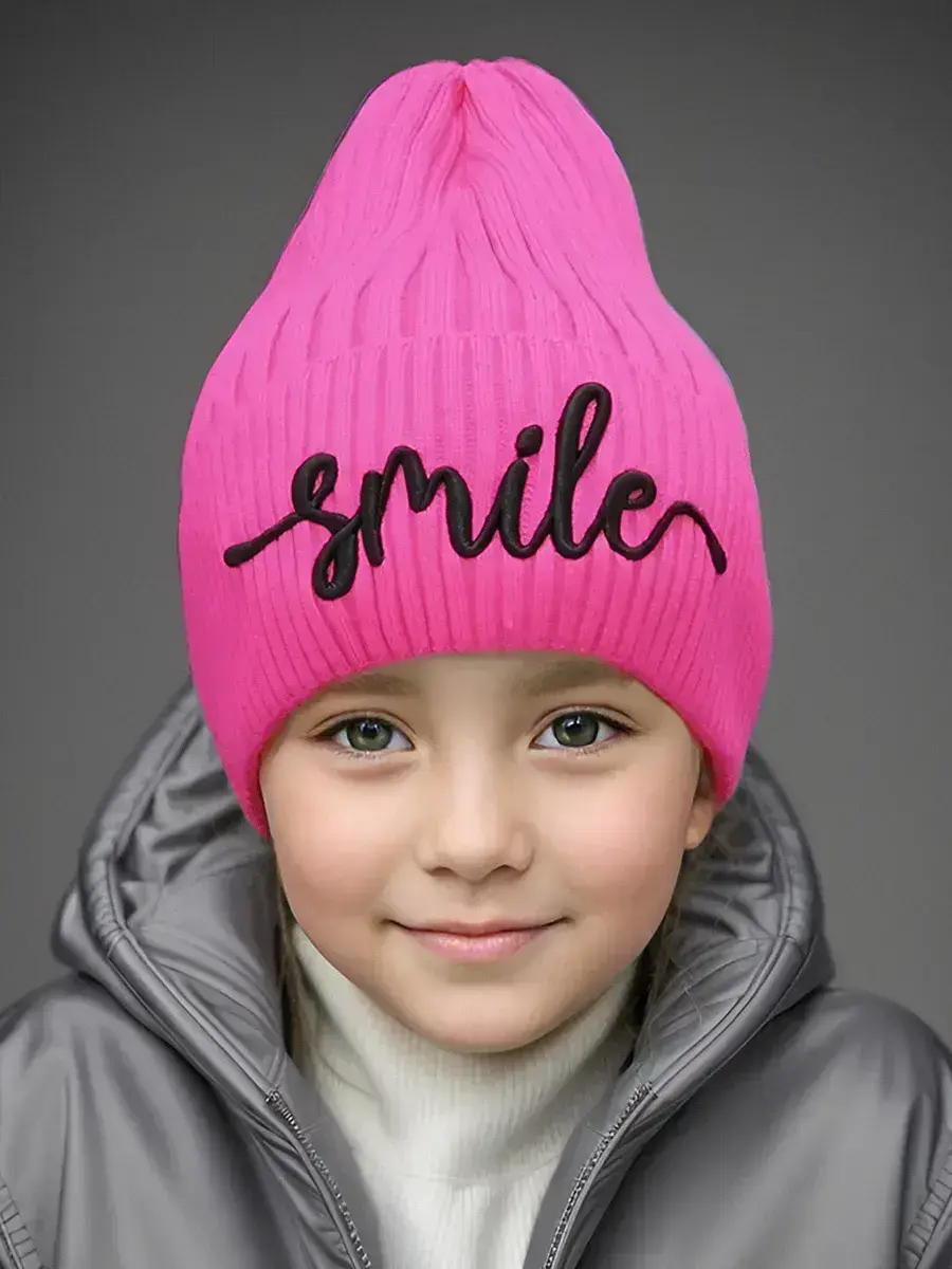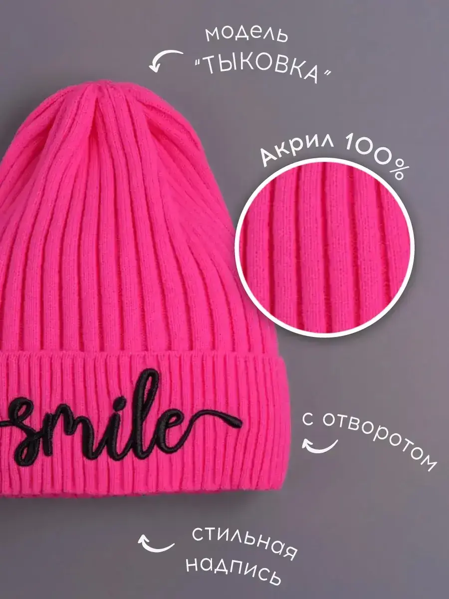 Шапка для девочки вязаная с модным дизайном станет прекрасным дополнением к стильному образу на эту осень. Головной убор для девочки в форме тыковки - хит этого сезона! Благодаря большому разнообразию цветов детская шапка хорошо сочетается с любым стилем и отлично впишется в гардероб каждой модницы! Модель хорошо сидит на голове и защищает ее от холода и ветра. Шапочка осенняя выполнена без подкладки, но не смотря на на это она очень мягкая и находиться в ней длительное время очень комфортно. Изделие выполнено из пряжи высокого качества (вязка лапша), поэтому сохранит отличный внешний вид даже после длительной носки. Декорирована тонкая шапка для девочки вышитой надписью "SMILE", что добавляет индивидуальности образу малышки. Наш головной убор - идеальное решение для школы, детского садика и прогулок на свежем воздухе.