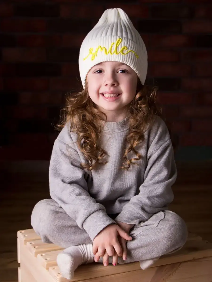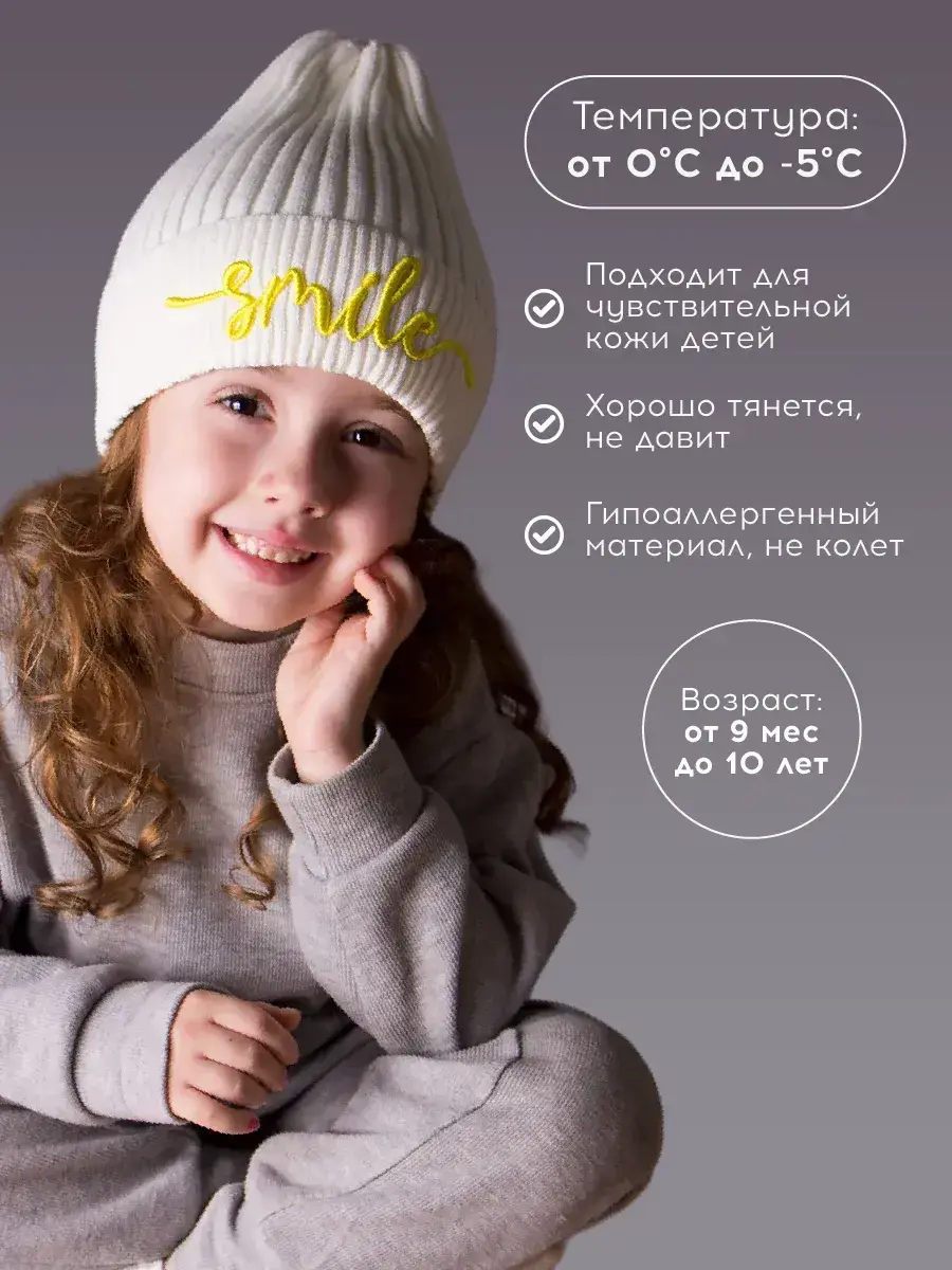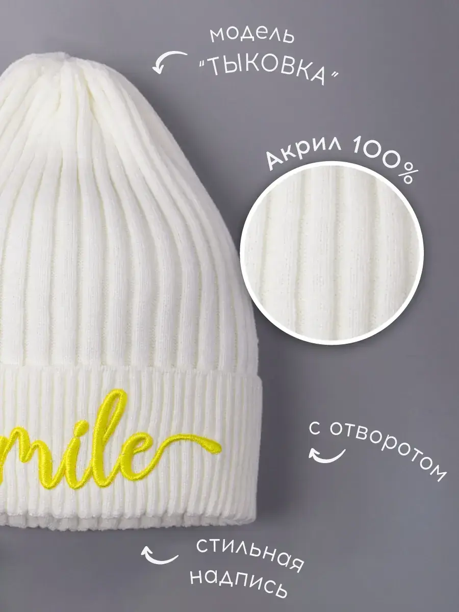 Шапка для девочки вязаная с модным дизайном станет прекрасным дополнением к стильному образу на эту осень. Головной убор для девочки в форме тыковки - хит этого сезона! Благодаря большому разнообразию цветов детская шапка хорошо сочетается с любым стилем и отлично впишется в гардероб каждой модницы! Модель хорошо сидит на голове и защищает ее от холода и ветра. Шапочка осенняя выполнена без подкладки, но не смотря на на это она очень мягкая и находиться в ней длительное время очень комфортно. Изделие выполнено из пряжи высокого качества (вязка лапша), поэтому сохранит отличный внешний вид даже после длительной носки. Декорирована тонкая шапка для девочки вышитой надписью "SMILE", что добавляет индивидуальности образу малышки. Наш головной убор - идеальное решение для школы, детского садика и прогулок на свежем воздухе.