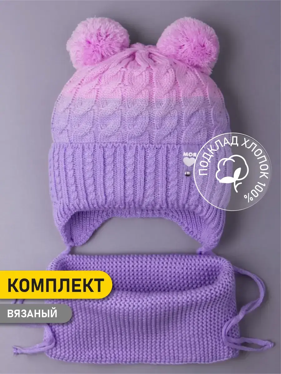 Шапка вязаная для девочки и снуд - это самый подходящий вариант на осень и теплую зиму. Теплая шапочка с двумя бубонами в виде ушек очень комфортная и не даст замерзнуть ребенку при -5 С. Благодаря широкой размерной сетке и разнообразию цветов, Вы сможете выбрать ее для детей от шести месяцев до десяти лет. Яркая модель с градиентом сделают образ маленькой модницы запоминающимся! Детский головной убор на завязках выполнен на подкладке из натурального хлопка и декорирован съемной биркой с надписью "МОЯ ЛЮБОВЬ", которая легко отстегивается на время ухода. Модель отлично закрывает ушки и лобик малышки, снижая риск простудиться. Снуд детский хорошо тянется и плотно прикрывает шею. Благодаря оптимальному размеру он регулируется по ширине. Шарф можно надевать как под верхнюю одежду, так и поверх нее, заправив под капюшон. Комплект можно носить как вместе, так и по отдельности, они абсолютно универсальны и замечательно сочетаются с любым гардеробом. Незаменимая вещь для детского сада и школы. Демисезонный набор также подойдет для длительного нахождения и активных игр на свежем воздухе. Высококачественный состав пряжи (акрил) не вызовет раздражения на чувствительной коже малыша.
