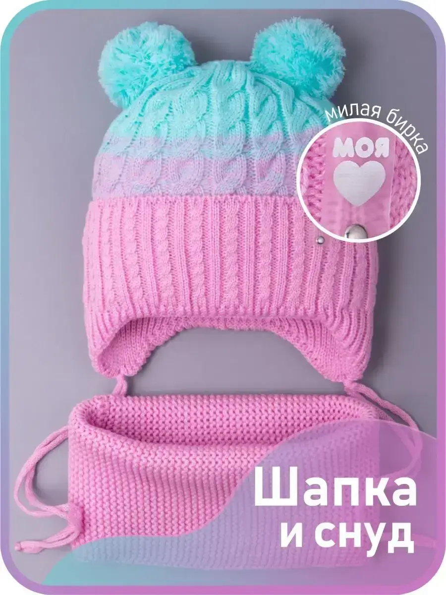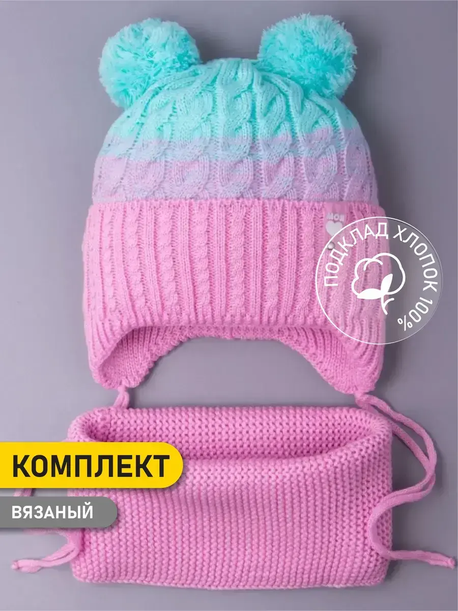 Шапка вязаная для девочки и снуд - это самый подходящий вариант на осень и теплую зиму. Теплая шапочка с двумя бубонами в виде ушек очень комфортная и не даст замерзнуть ребенку при -5 С. Благодаря широкой размерной сетке и разнообразию цветов, Вы сможете выбрать ее для детей от шести месяцев до десяти лет. Яркая модель с градиентом сделают образ маленькой модницы запоминающимся! Детский головной убор на завязках выполнен на подкладке из натурального хлопка и декорирован съемной биркой с надписью "МОЯ ЛЮБОВЬ", которая легко отстегивается на время ухода. Модель отлично закрывает ушки и лобик малышки, снижая риск простудиться. Снуд детский хорошо тянется и плотно прикрывает шею. Благодаря оптимальному размеру он регулируется по ширине. Шарф можно надевать как под верхнюю одежду, так и поверх нее, заправив под капюшон. Комплект можно носить как вместе, так и по отдельности, они абсолютно универсальны и замечательно сочетаются с любым гардеробом. Незаменимая вещь для детского сада и школы. Демисезонный набор также подойдет для длительного нахождения и активных игр на свежем воздухе. Высококачественный состав пряжи (акрил) не вызовет раздражения на чувствительной коже малыша.