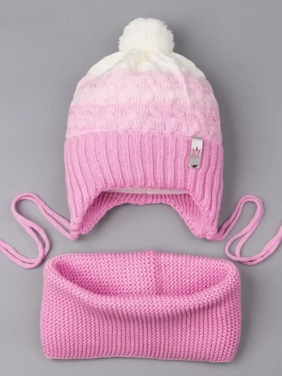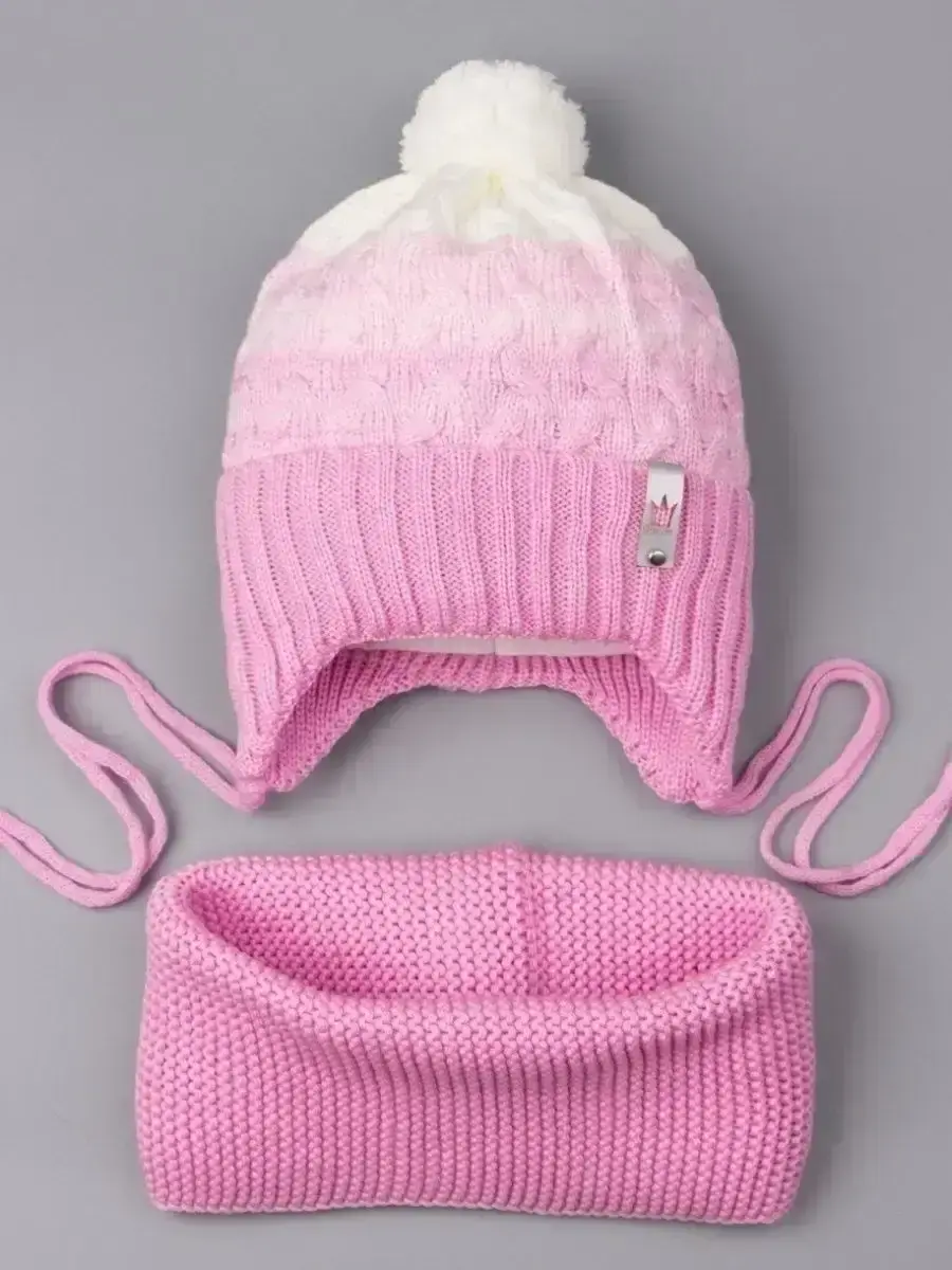 В комплекте идет также снуд детский который отлично согревает шею. Этот шарф для девочки обеспечит дополнительный комфорт и тепло во время прогулок на открытом воздухе.