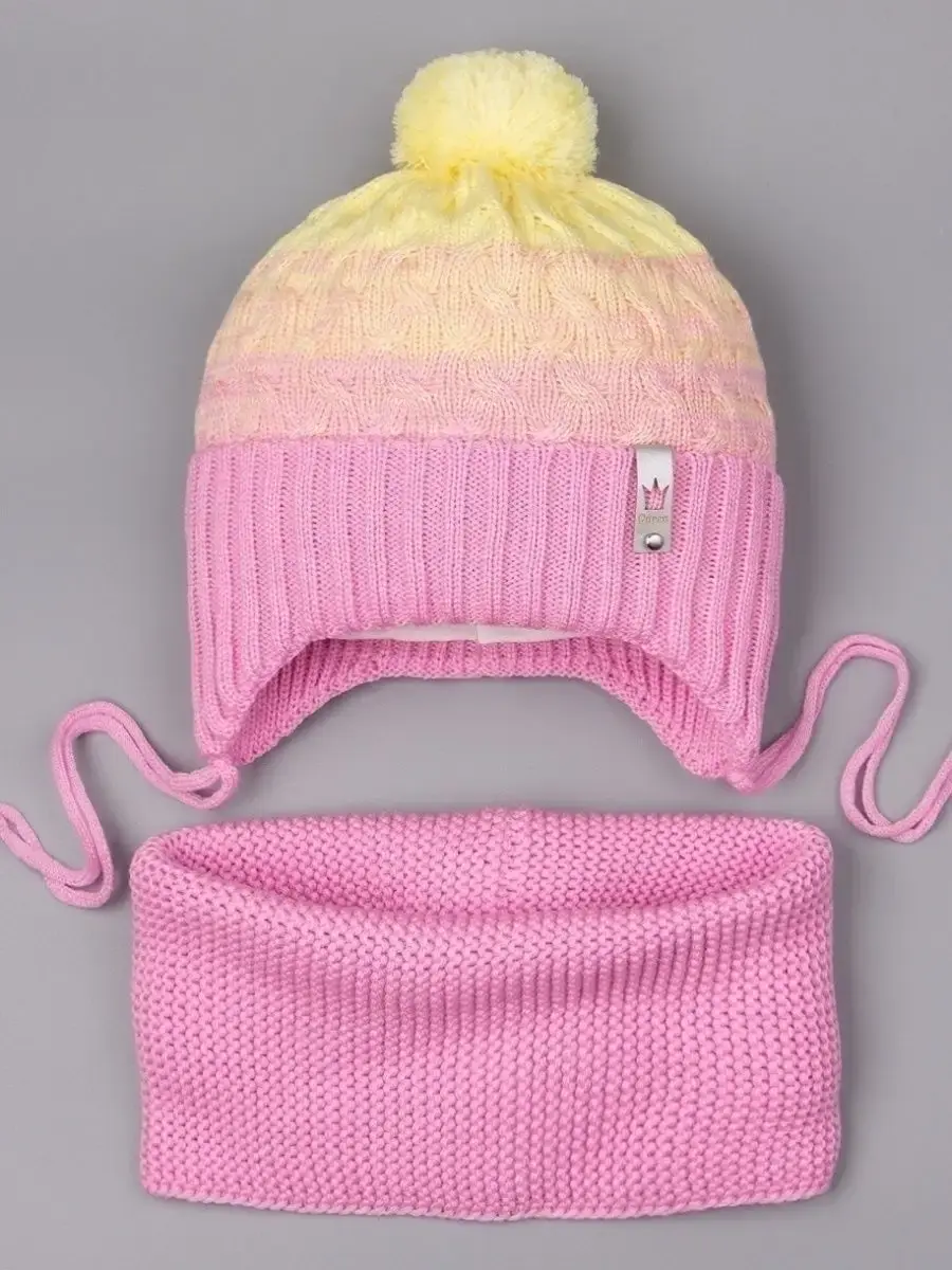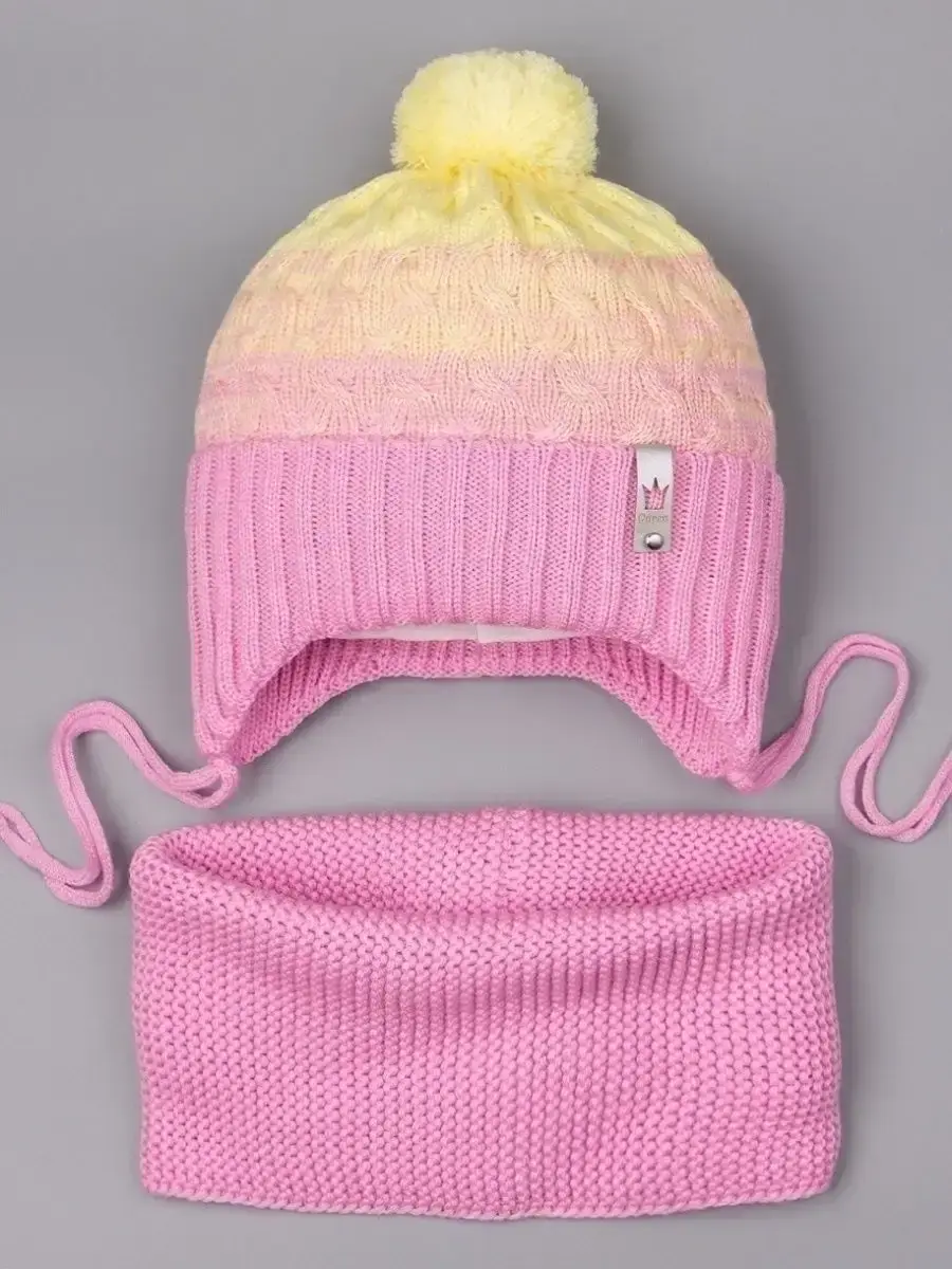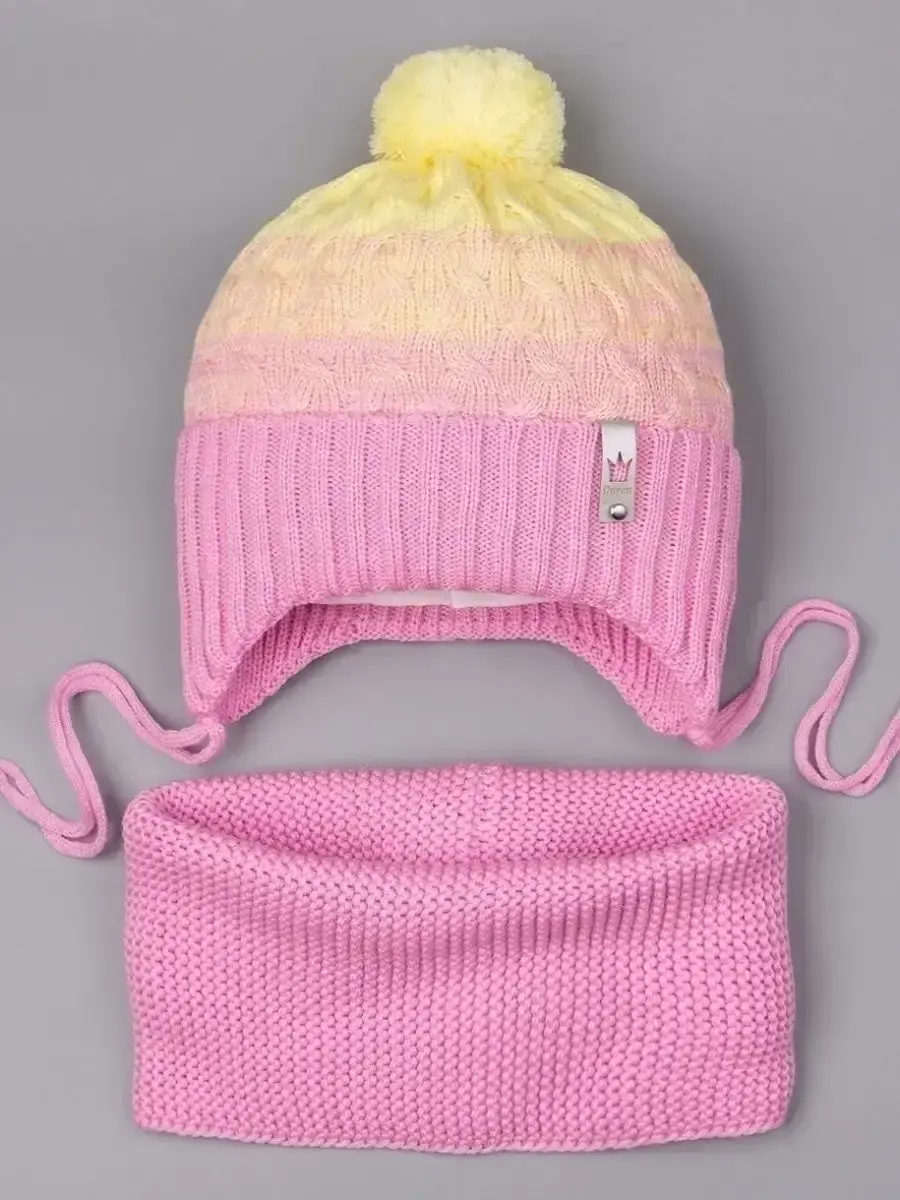 В комплекте идет также снуд детский который отлично согревает шею. Этот шарф для девочки обеспечит дополнительный комфорт и тепло во время прогулок на открытом воздухе.