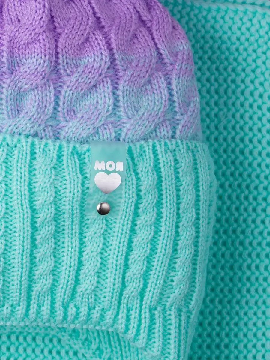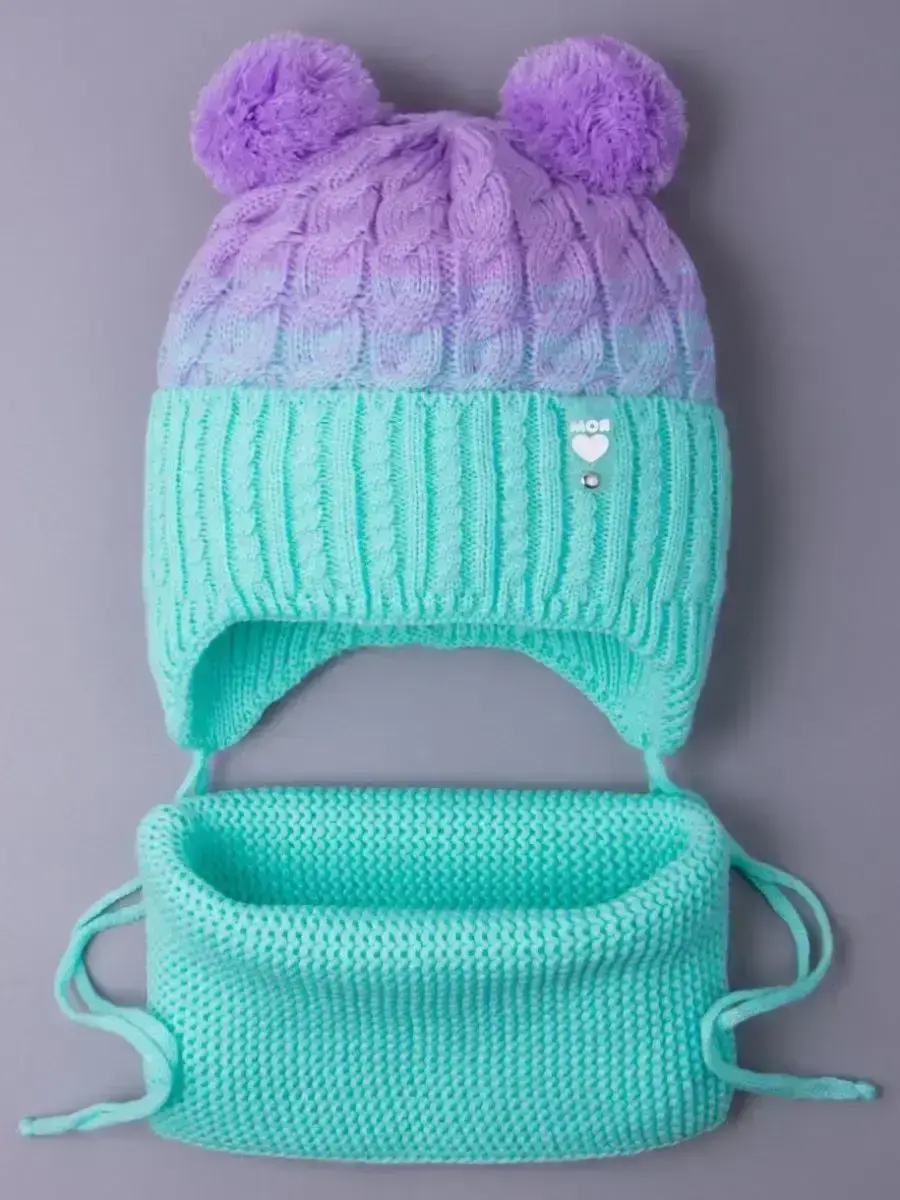Шапка вязаная для девочки и снуд - это самый подходящий вариант на осень и теплую зиму. Теплая шапочка с двумя бубонами в виде ушек очень комфортная и не даст замерзнуть ребенку при -5 С. Благодаря широкой размерной сетке и разнообразию цветов, Вы сможете выбрать ее для детей от шести месяцев до десяти лет. Яркая модель с градиентом сделают образ маленькой модницы запоминающимся! Детский головной убор на завязках выполнен на подкладке из натурального хлопка и декорирован съемной биркой с надписью "МОЯ ЛЮБОВЬ", которая легко отстегивается на время ухода. Модель отлично закрывает ушки и лобик малышки, снижая риск простудиться. Снуд детский хорошо тянется и плотно прикрывает шею. Благодаря оптимальному размеру он регулируется по ширине. Шарф можно надевать как под верхнюю одежду, так и поверх нее, заправив под капюшон. Комплект можно носить как вместе, так и по отдельности, они абсолютно универсальны и замечательно сочетаются с любым гардеробом. Незаменимая вещь для детского сада и школы. Демисезонный набор также подойдет для длительного нахождения и активных игр на свежем воздухе. Высококачественный состав пряжи (акрил) не вызовет раздражения на чувствительной коже малыша.