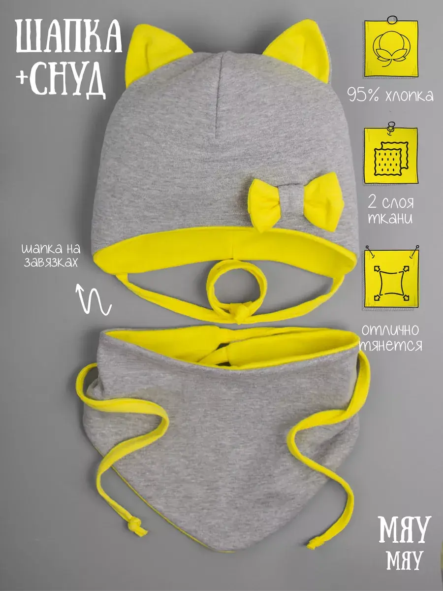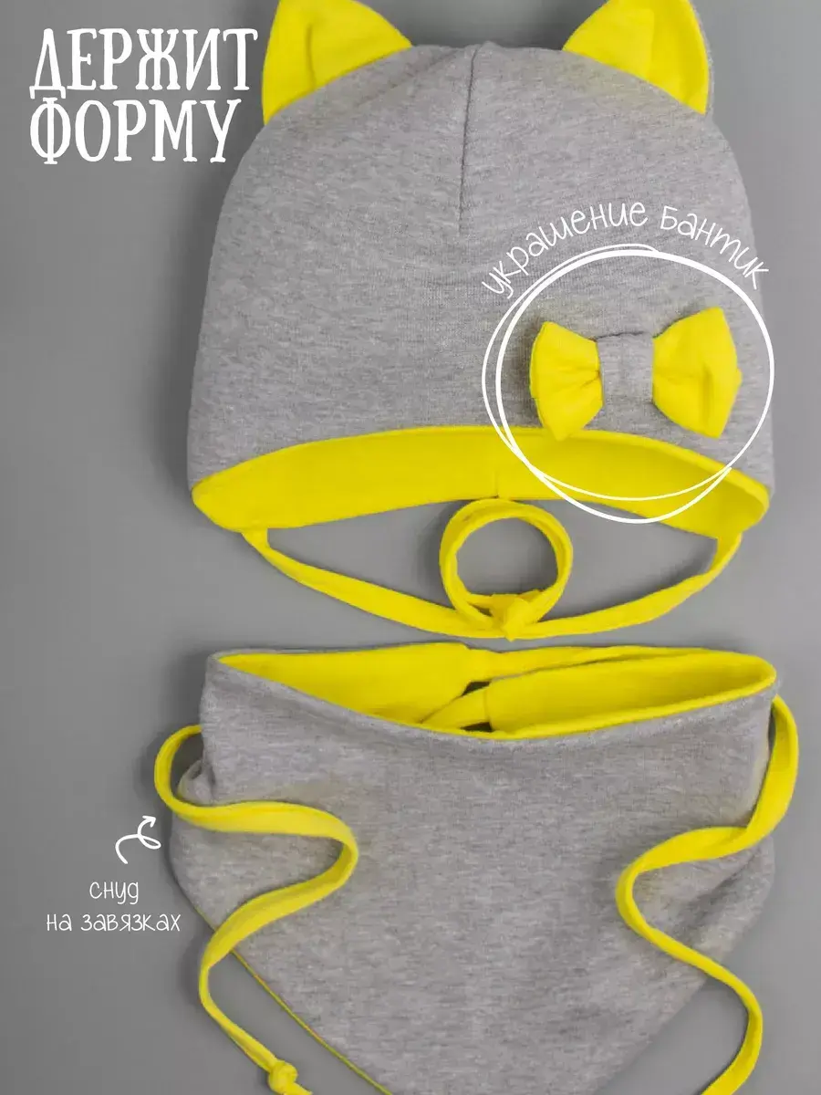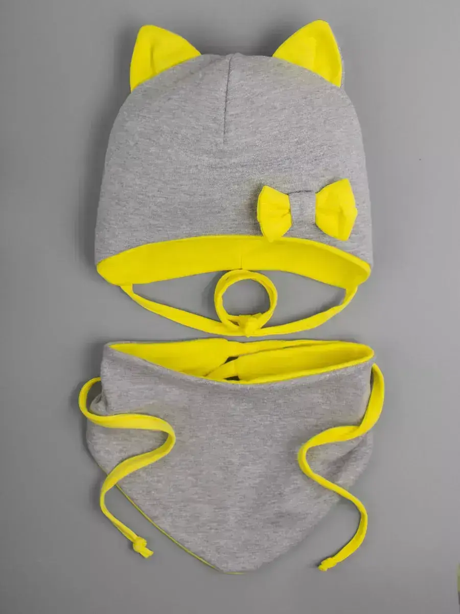 Трикотажный демисезонный комплект для девочек изготовлен из хлопка. Включает в себя снуд и шапку с ушками котика. Идеален на теплую осень. Благодаря двухслойной структуре ткани вашему малышу будет тепло и комфортно даже в ветреную погоду. Шапка для девочки плотно прилегает, не сползает на лоб и прикрывает уши. Нагрудник легко надевать и снимать, он не заворачивается во время носки и не дает шее потеть. Гипоаллергенный материал подойдет для детей с чувствительной кожей. Данный дуэт замечательно дополнит любую легкую курточку или пальто. Модель имеет широкую цветовую палитру. Вы можете заказать несколько наборов и комбинировать их по очереди, создавая новые стильные образы каждый день. Мягкое полотно не потеряет яркость и надолго сохранит первоначальную форму даже после множества стирок. Изделие подходит для активного отдыха на свежем воздухе, прогулок и похода в детский сад. Рекомендуемый температурный режим от +5 до +15 С. Комплект станет великолепным подарком к любому празднику!