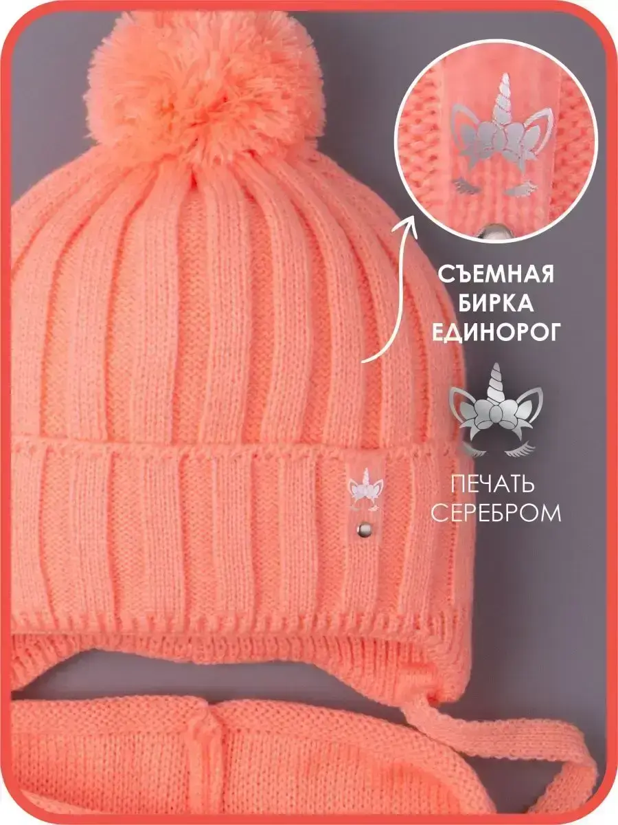 Шапка детская и снуд - это подходящий вариант холодной погоды на осень и теплую зиму. Шапочка для девочки с завязками подойдет с шести месяцев до восьми лет. Головной убор осенний дополнен подкладом из натурального хлопка, благодаря чему голова ребенка не будет потеть, а находиться в ней во время долгих прогулок будет комфортно. Широкий отворот плотно прилегает, закрывает уши и защищает от холода. Модель декорирована стильной биркой с изображением единорога, которую при желании можно отстегнуть. Вязаный снуд - это удобная альтернатива шарфу или манишке, он хорошо тянется и складывается вдвое. Благодаря качественной вязке он легко регулируется по ширине, а его длина подходит даже для объемного капюшона. Шапка для малышей выполнена в самых трендовых цветах этого сезона и отлично впишется в любой гардероб. Комплект осенний для девочки рассчитан на температурный режим от +5 до -10 С. Он изготовлен из пряжи высокого качества, которая не растянется и не потеряет форму даже после длительного использования. Набор не скатывается, не магнитится, не продувает. Чтобы изделие прослужило Вам как можно дольше, мы рекомендуем ручную или машинную бережную стирку при t не более 30 С. Приятных Вам покупок!