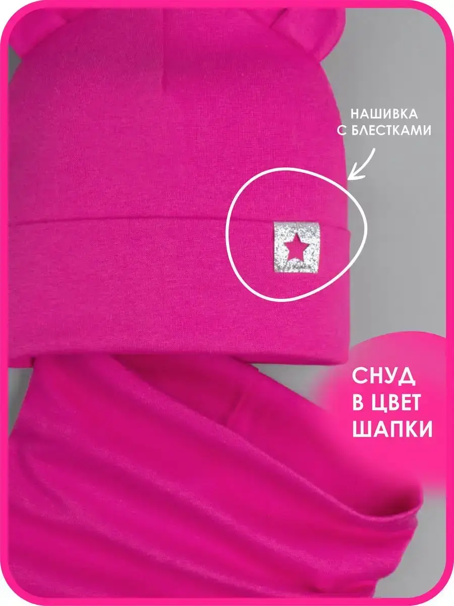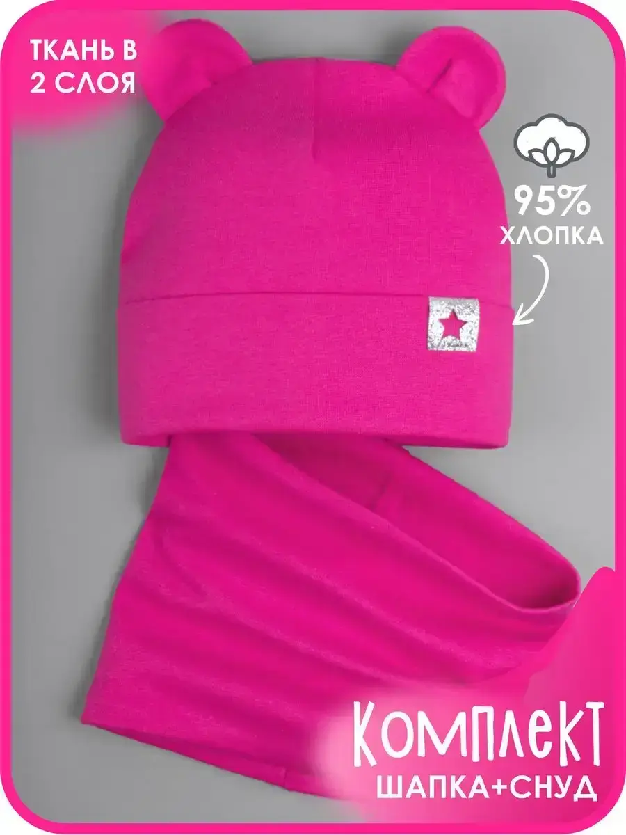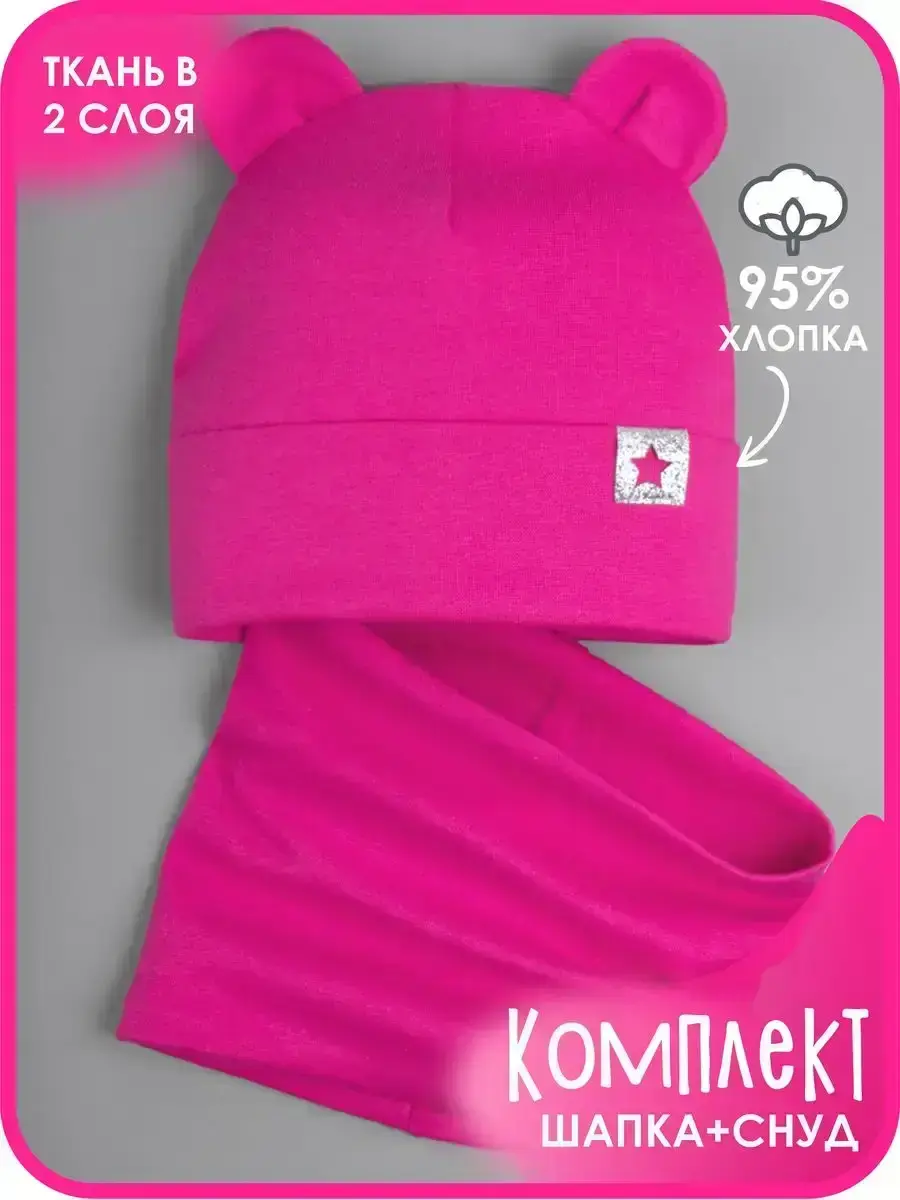 Шапка детская и снуд из плотного трикотажа станут прекрасным вариантом для детей на осень и теплую зиму. Осенний дуэт создаст неповторимый образ, а его универсальный дизайн подойдет к любому гардеробу. Шапочка двойная представлена в нескольких размерах для малышей от 1 мес до 10 лет. Демисезонный комплект для девочки от российского бренда РусБубон - это незаменимый аксессуар для активного отдыха на свежем воздухе и повседневной носки в школу и детский сад. Головной убор для ребенка хорошо сидит на голове, не сползает на глаза, а широкий отворот закрывает уши и защищает от ветра. Снуд отлично тянется, его можно одевать как под капюшон верхней одежды, так и просто на шею. Приятная ткань не колется и не натирает, а гипоаллергенный материал не вызовет раздражения на чувствительной коже ребенка. Точно подобранная цветовая гамма сочетается с любым нарядом: теплым классическим пальто или легкой спортивной курткой. Благодаря мягкому полотну высокого качества изделие не потеряют свою форму и цвет даже после длительного использования.