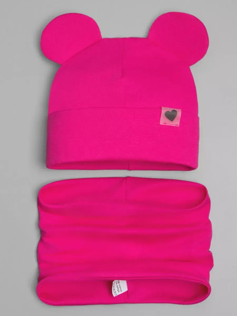 Осенняя шапка с ушками трикотажная и снуд - это самый подходящий вариант для малышей в холодное время года. Эта модель для малышей - настоящая новинка в мире детской моды! Благодаря своему универсальному дизайну она отлично сочетается с любым осенним гардеробом, модно дополняет образ, а ушки микки придают особого очарования! Изготовленная из высококачественного трикотажного материала, эта шапочка обладает прекрасными теплоизоляционными свойствами. Нежный и мягкий хлопок позволит коже дышать и не вызывает дискомфорта даже при длительном использовании. Благодаря универсальности комплекта для девочки, его можно использовать каждый аксессуар отдельно или в комбинации с другими элементами одежды. Широкая размерная сетка позволит выбрать головной убор не только для малышей, но деткам постарше. Демисезонный комплект для девочки отлично подойдет для повседневной носки в школу, детский сад и активного отдыха на свежем воздухе! По уходу за изделием мы рекомендуем своим клиентам бережную стирку при t не более 30С. Не упустите возможность приобрести для Вашего ребенка эту красивый и модный аксессуар! Сделано в России.