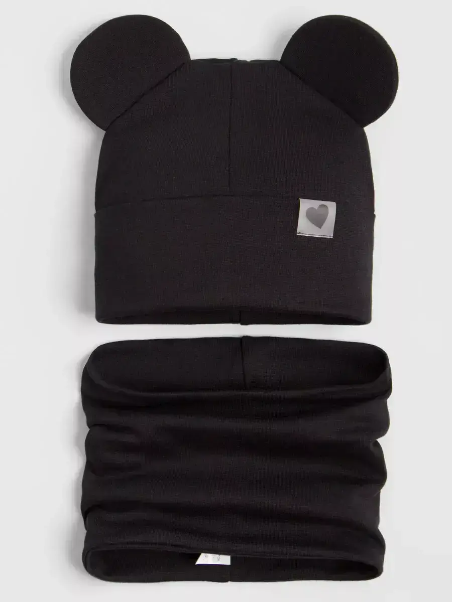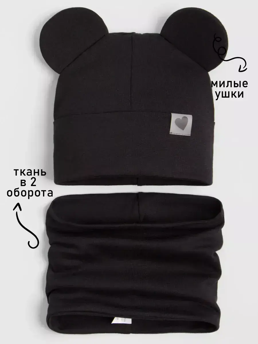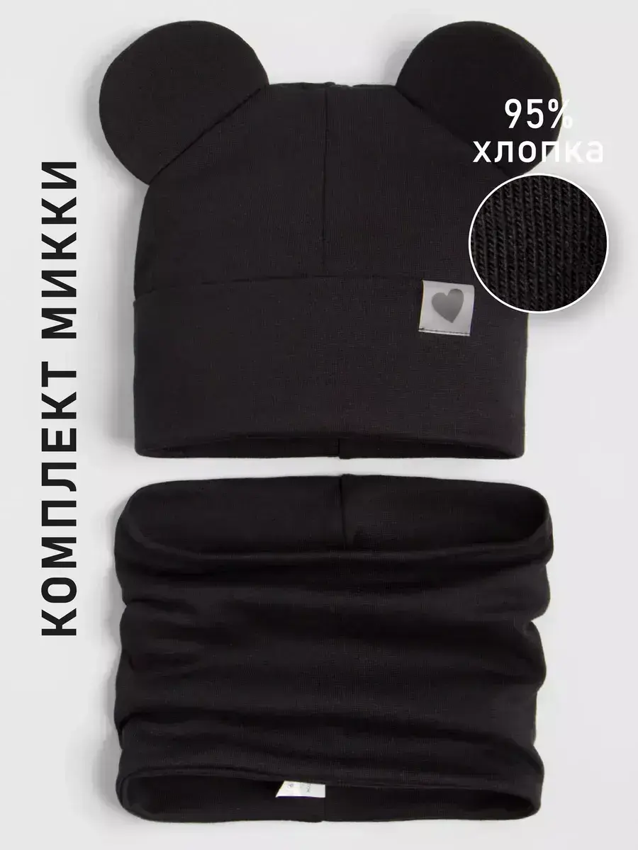 Осенняя шапка с ушками трикотажная и снуд - это самый подходящий вариант для малышей в холодное время года. Эта модель для малышей - настоящая новинка в мире детской моды! Благодаря своему универсальному дизайну она отлично сочетается с любым осенним гардеробом, модно дополняет образ, а ушки микки придают особого очарования! Изготовленная из высококачественного трикотажного материала, эта шапочка обладает прекрасными теплоизоляционными свойствами. Нежный и мягкий хлопок позволит коже дышать и не вызывает дискомфорта даже при длительном использовании. Благодаря универсальности комплекта для девочки, его можно использовать каждый аксессуар отдельно или в комбинации с другими элементами одежды. Широкая размерная сетка позволит выбрать головной убор не только для малышей, но деткам постарше. Демисезонный комплект для девочки отлично подойдет для повседневной носки в школу, детский сад и активного отдыха на свежем воздухе! По уходу за изделием мы рекомендуем своим клиентам бережную стирку при t не более 30С. Не упустите возможность приобрести для Вашего ребенка эту красивый и модный аксессуар! Сделано в России.