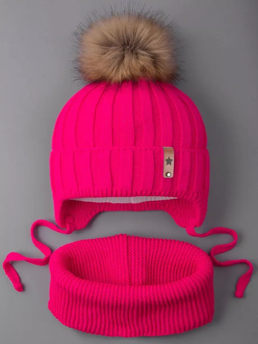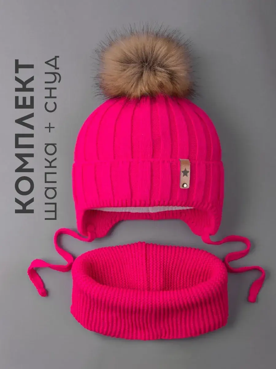 Зимняя шапка для девочки и снудом с вязкой "лапша" и утеплителем из синтепона надежно защищают голову от мороза, а трикотажная подкладка делает ношение мягким и приятным. Зимний детский комплект создан для максимального тепла и комфорта малышей в холодное время года. Шапочка для девочек на завязках, поэтому не сползает, обеспечивая удобную посадку на протяжении всего дня. Детская шапка дополнена стильным и уютным снудом, который надежно закрывает шею, защищая вашего ребёнка от ветра и холода.