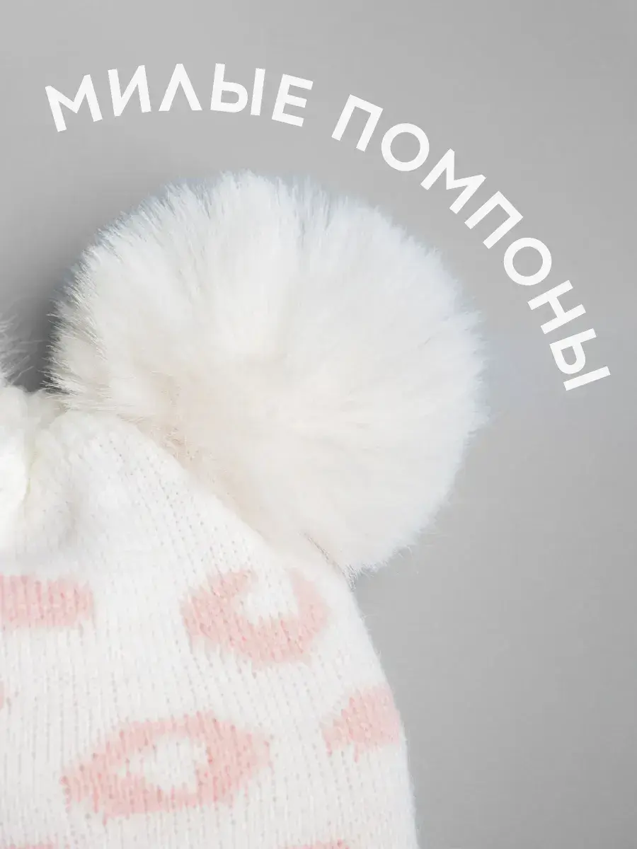 Помпоны добавляют игривости и уникальности. Расположенные на вершине шапки, они создают забавный образ и нравятся маленьким модницам. Сделано в России.