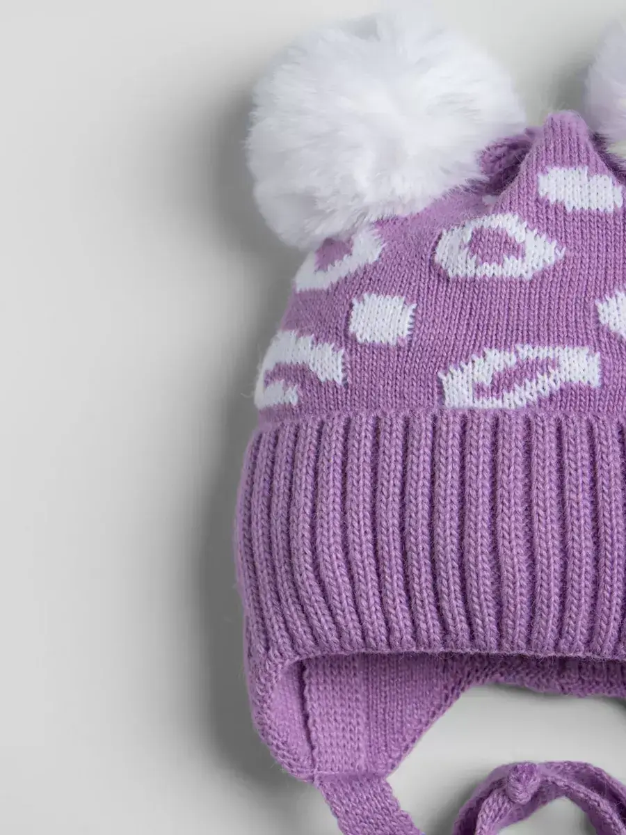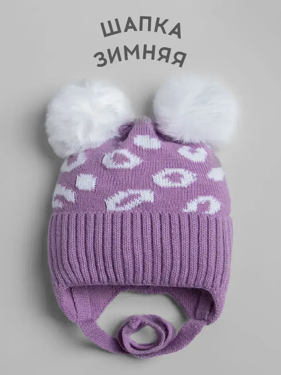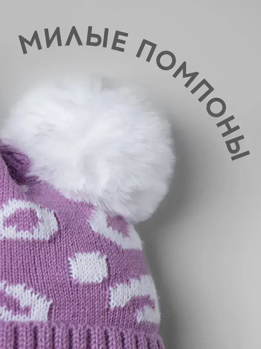 Помпоны добавляют игривости и уникальности. Расположенные на вершине шапки, они создают забавный образ и нравятся маленьким модницам. Сделано в России.