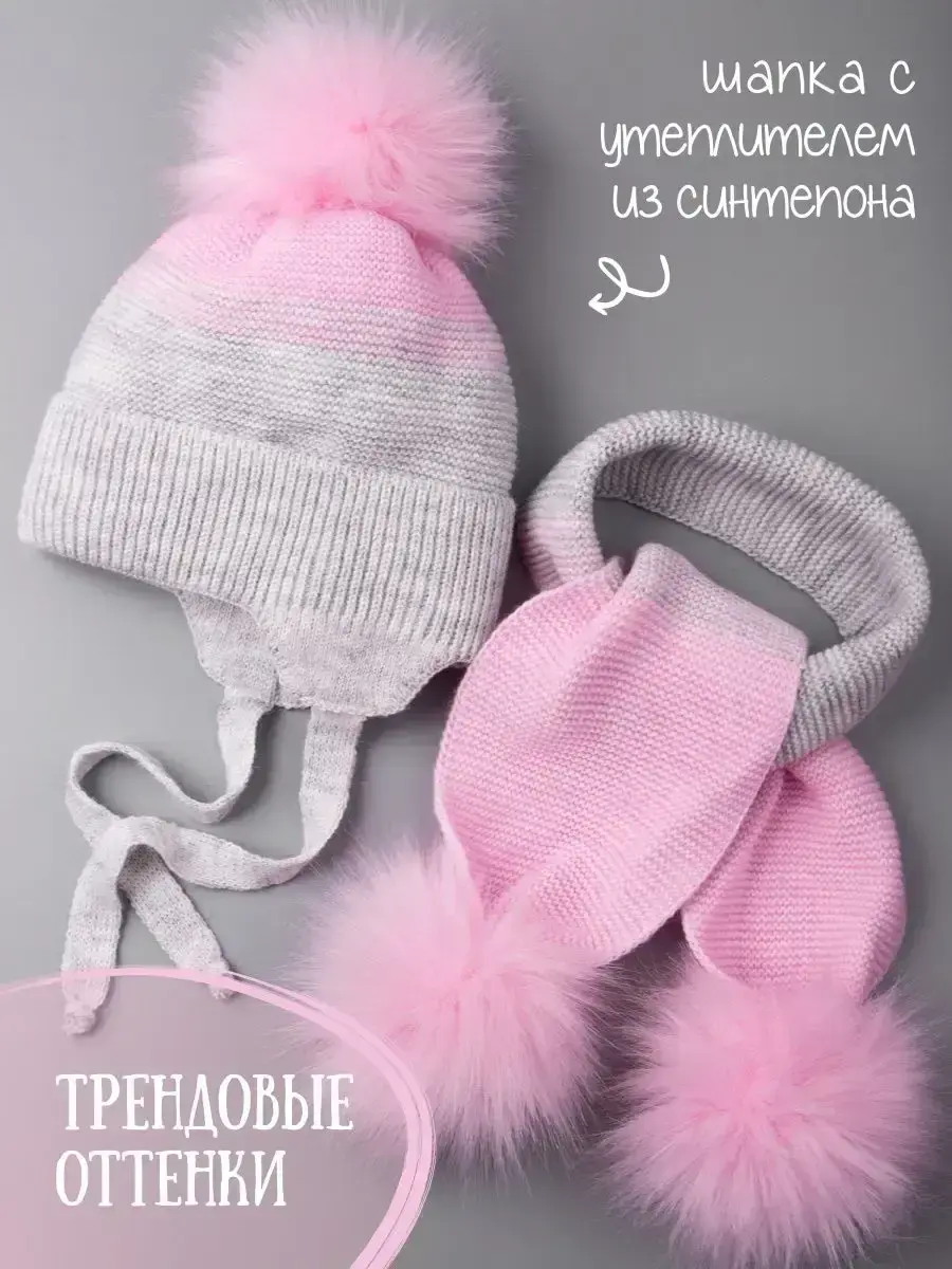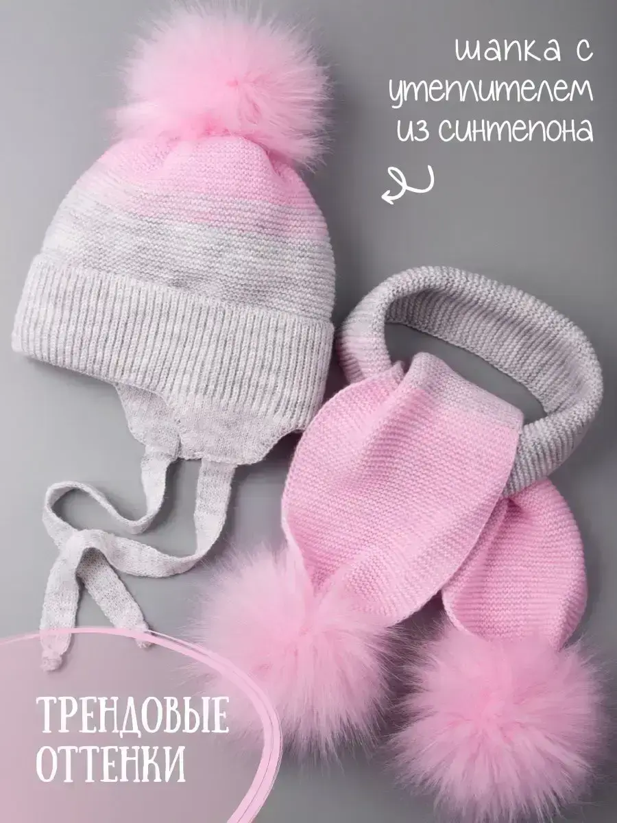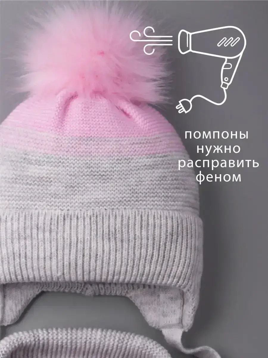 Шапка зимняя для девочки на завязках в комплекте с шарфом - это отличный вариант на зиму и холодную осень. Головной убор подойдет к любому зимнему гардеробу девочки. Модель утеплена синтепоном, поэтому Вашему ребенку будет комфортно в ней даже при -25С. Вязаная шапочка для девочки имеет подкладку из натурального хлопка, что позволяет лучше сохранять тепло. Шапка и шарфик идеальны для активного отдыха на свежем воздухе и длительных прогулок. Универсальные модные расцветки нашего зимнего комплекта хорошо сочетаются с любым гардеробом ребенка. Наш зимний комплект просто незаменимая вещь для школы и детского садика. Чтобы меховые помпоны быстрее распушились мы рекомендуем подержать их над горячим паром (например, использовать фен) 2-3 секунды, а затем встряхнуть. Благодаря качественному составу пряжи (акрил) детский вязаный комплект будет радовать Вас не один сезон! По уходу за самим изделием своим клиентам мы рекомендуем бережную стирку (при t не более 30С) и сушку на горизонтальной поверхности в расправленном виде. Сделано в России.