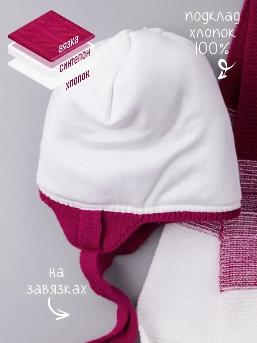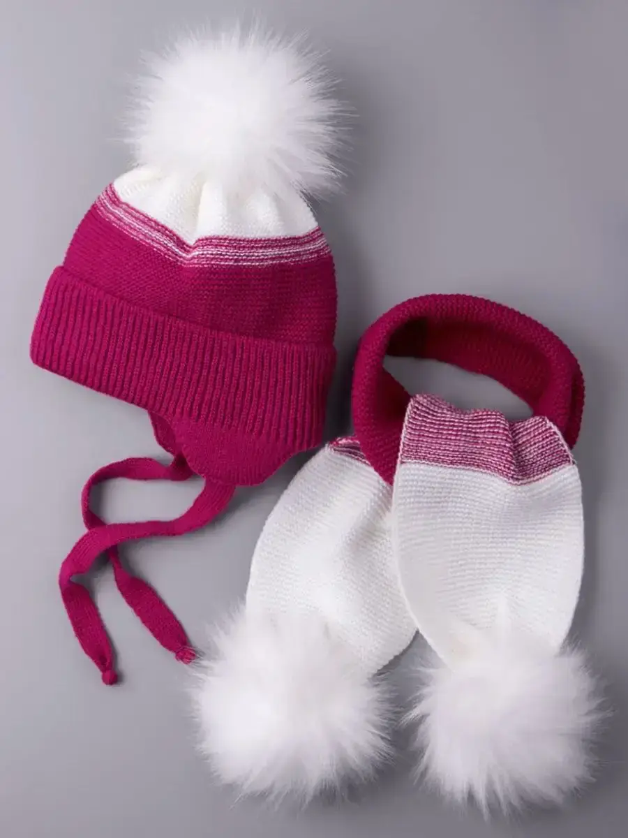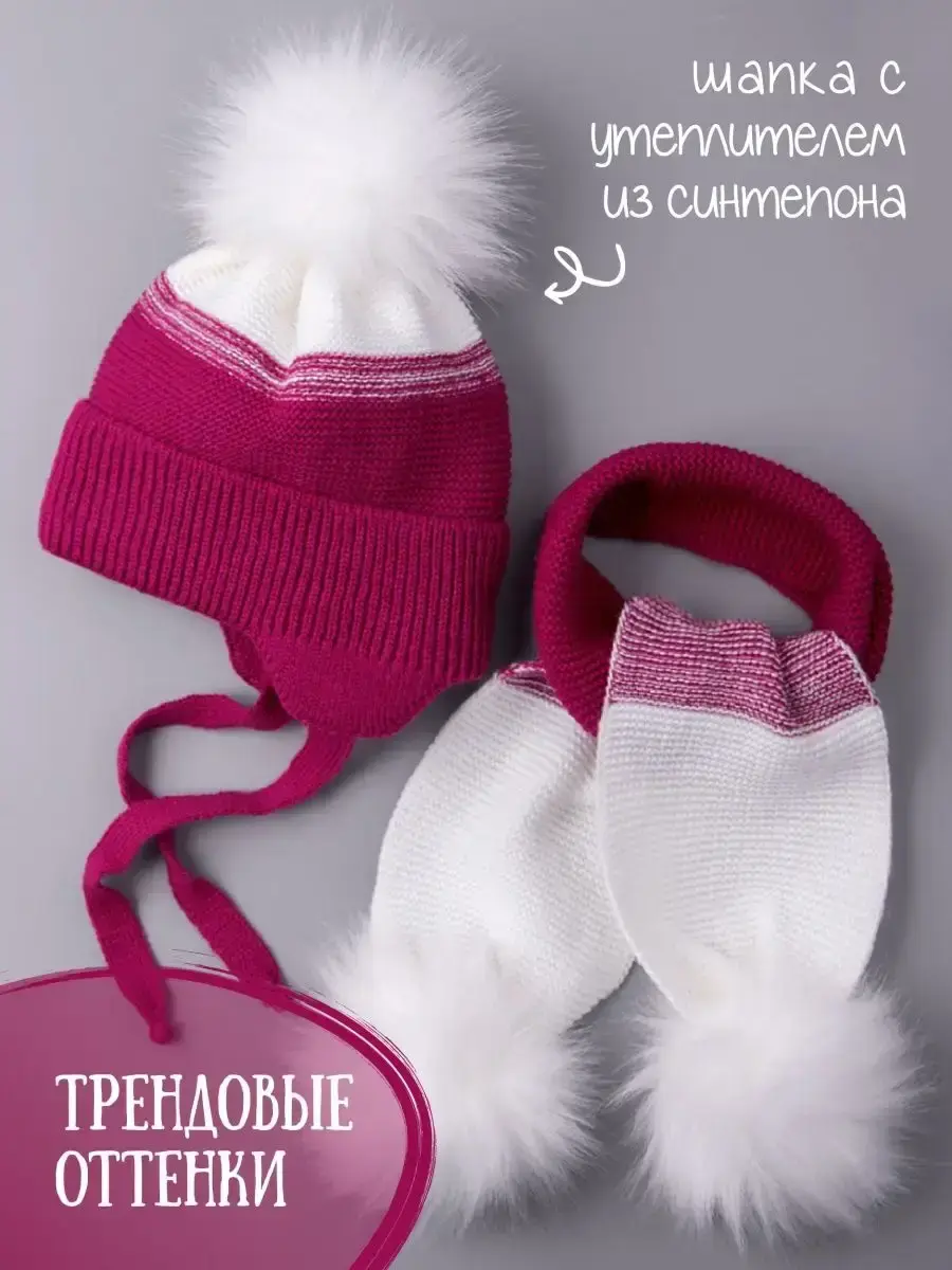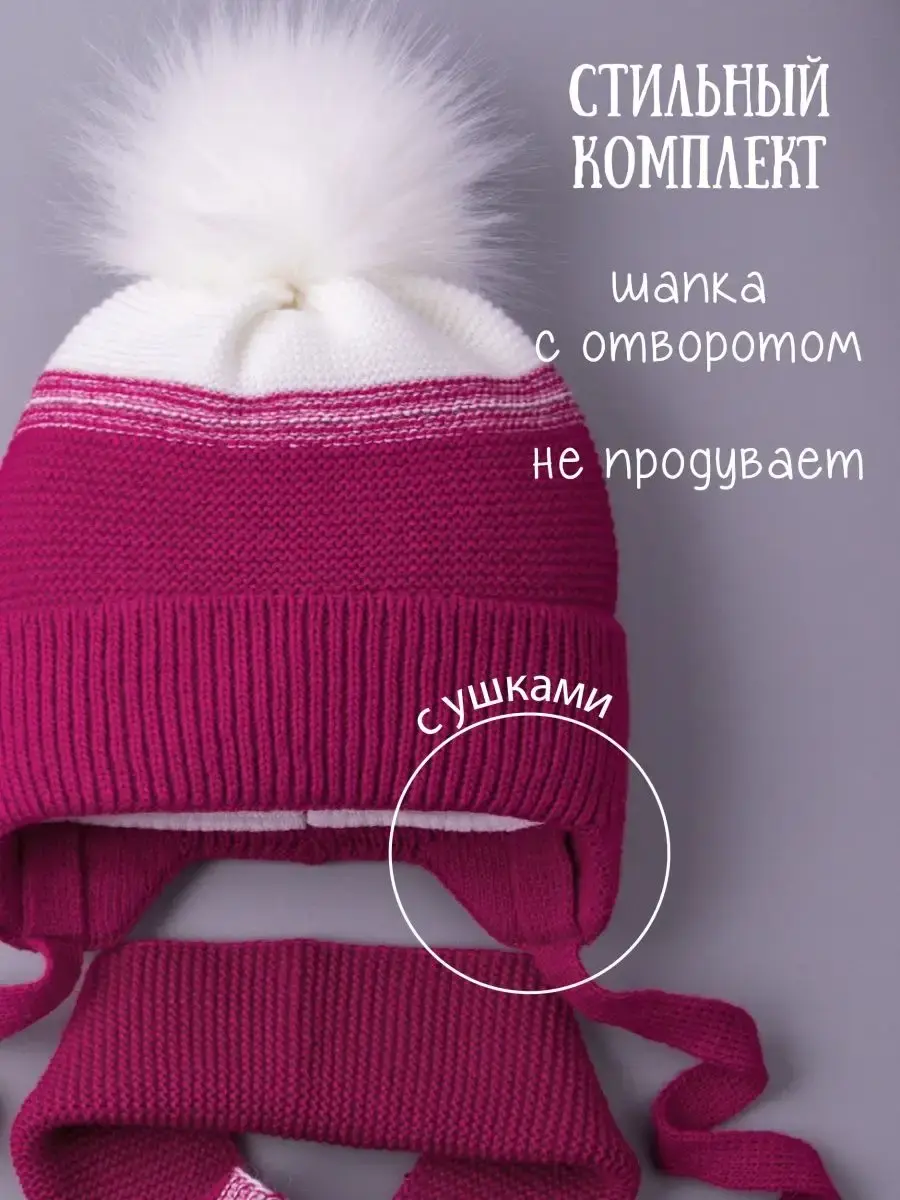 Шапка зимняя детская на завязках в комплекте с шарфом - это отличный вариант на зиму и холодную осень. Головной убор подойдет как для мальчика, так и для девочки. Модель утеплена синтепоном, поэтому Вашему ребенку будет комфортно в ней даже при -25С. Вязаная шапочка для мальчика и для девочки имеет подкладку из натурального хлопка, что позволяет лучше сохранять тепло. Шапка и шарфик идеальны для активного отдыха на свежем воздухе и длительных прогулок. Универсальные модные расцветки нашего зимнего комплекта хорошо сочетаются с любым гардеробом ребенка. Наш зимний комплект просто незаменимая вещь для школы и детского садика, а так же для прогулок на свежем воздухе. Чтобы меховые помпоны быстрее распушились мы рекомендуем подержать их над горячим паром (например, использовать фен) 2-3 секунды, а затем встряхнуть. Благодаря качественному составу пряжи (акрил) детский вязаный комплект будет радовать Вас не один сезон! По уходу за самим изделием своим клиентам мы рекомендуем бережную стирку (при t не более 30С) и сушку на горизонтальной поверхности в расправленном виде. Сделано в России.
