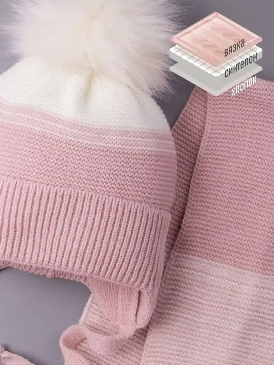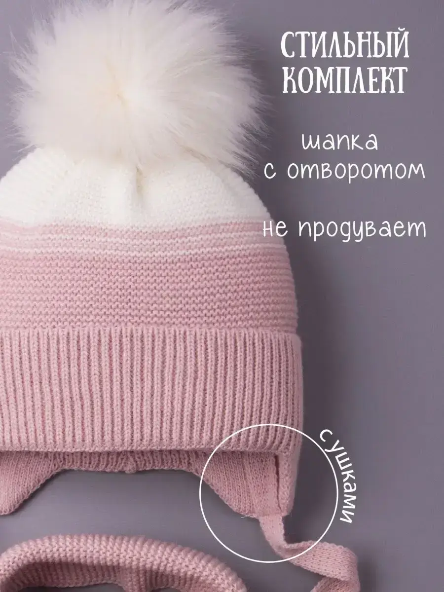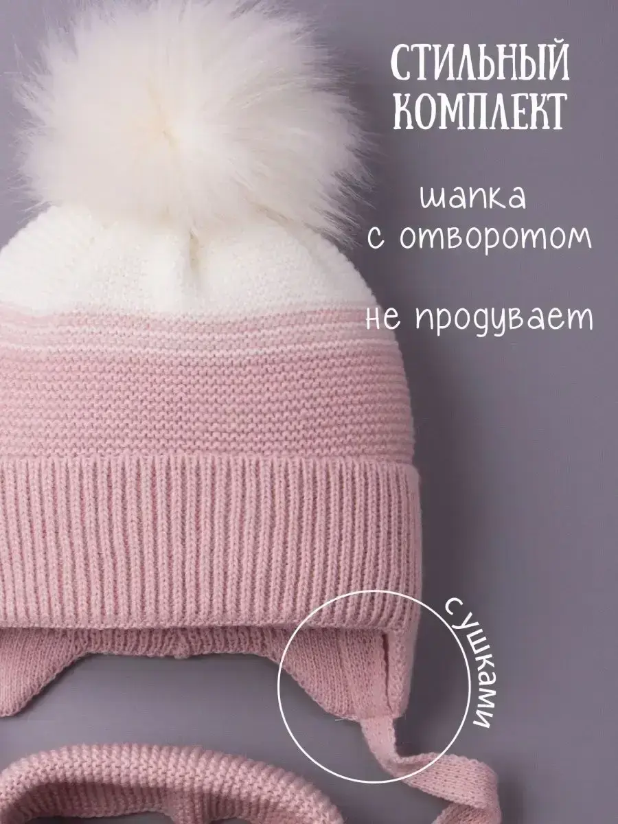 Шапка зимняя для девочки на завязках в комплекте с шарфом - это отличный вариант на зиму и холодную осень. Головной убор подойдет к любому зимнему гардеробу девочки. Модель утеплена синтепоном, поэтому Вашему ребенку будет комфортно в ней даже при -25С. Вязаная шапочка для девочки имеет подкладку из натурального хлопка, что позволяет лучше сохранять тепло. Шапка и шарфик идеальны для активного отдыха на свежем воздухе и длительных прогулок. Универсальные модные расцветки нашего зимнего комплекта хорошо сочетаются с любым гардеробом ребенка. Наш зимний комплект просто незаменимая вещь для школы и детского садика. Чтобы меховые помпоны быстрее распушились мы рекомендуем подержать их над горячим паром (например, использовать фен) 2-3 секунды, а затем встряхнуть. Благодаря качественному составу пряжи (акрил) детский вязаный комплект будет радовать Вас не один сезон! По уходу за самим изделием своим клиентам мы рекомендуем бережную стирку (при t не более 30С) и сушку на горизонтальной поверхности в расправленном виде. Сделано в России.