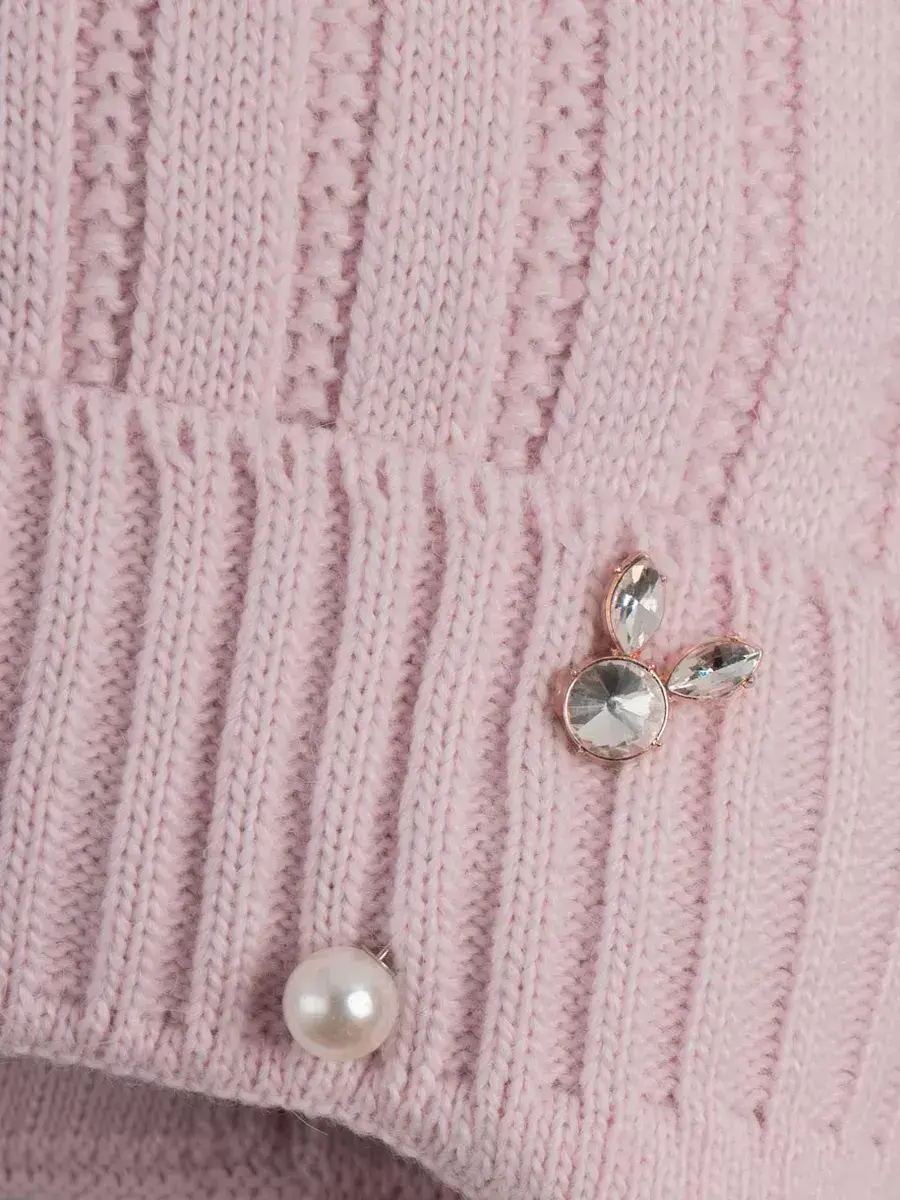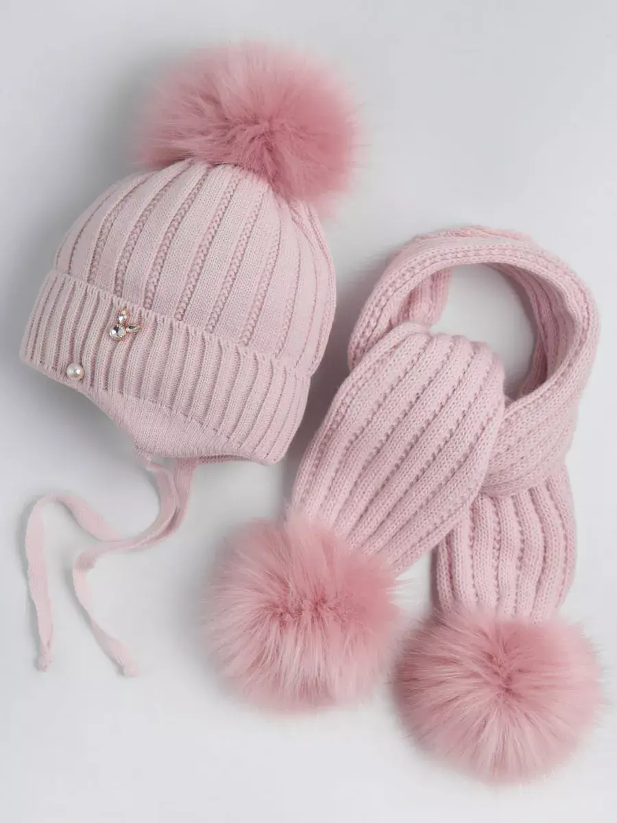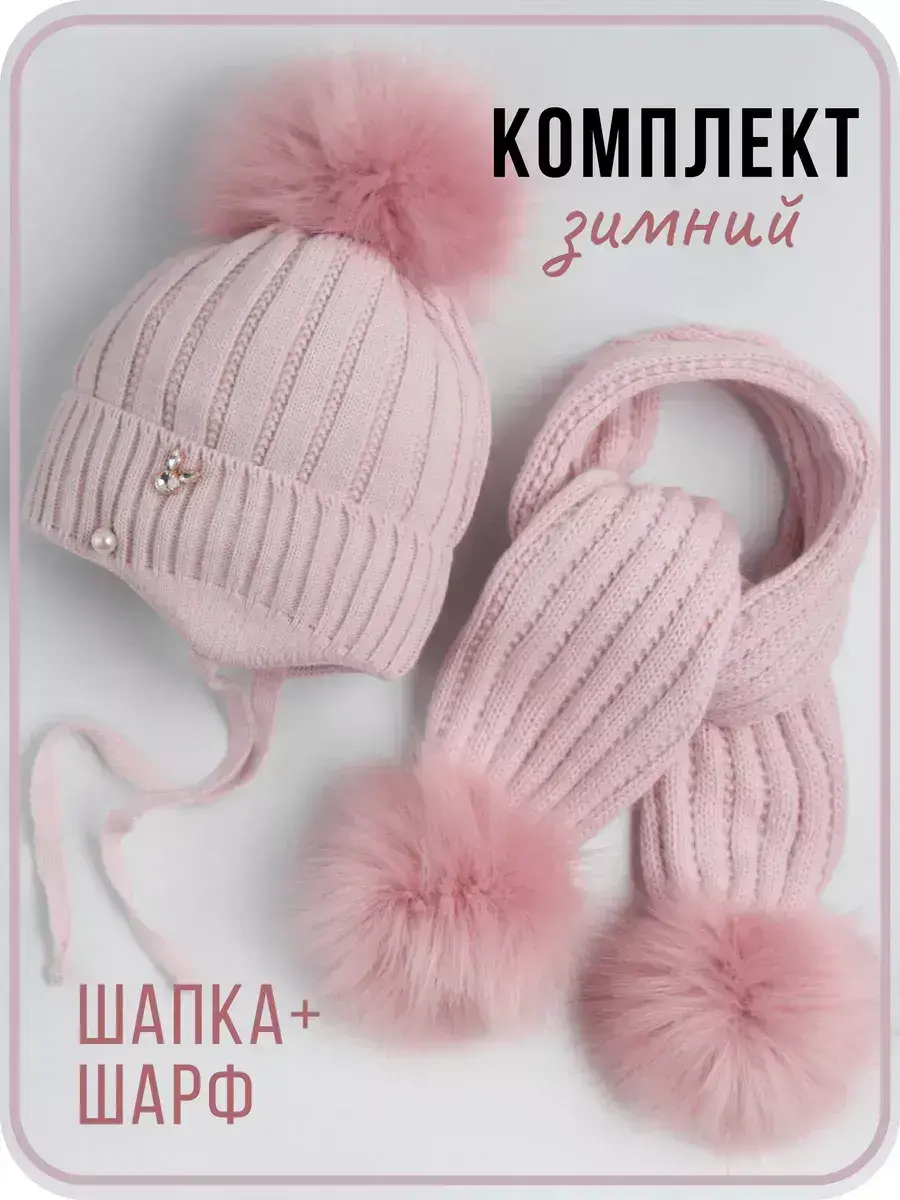Шапка для девочки в комплекте с шарфом для девочки - это отличное решение для Вашего ребенка на зиму или на холодную осень. Вязаная шапочка с подворотом и шарфик с помпонами настолько теплые и мягкие, что не дадут замерзнуть ребенку даже в сильные морозы. Головной убор демисезонный украшен россыпью из перламутровых бусин, что сделает образ малышки нежным и неповторимым. Шапка для девочки зимняя утеплена подкладкой из хлопка, а плотный отворот хорошо закрывает уши и защищает от ветра. Теплая шапка для детей выполнена из высококачественной гипоаллергенной пряжи, за счет чего она не колется и не вызывает раздражения на нежной коже ребёнка. Чтобы меховой помпон быстрее распушился его необходимо подержать над горячим паром 2-3 секунды и встряхнуть. Шарф для девочки отлично закрывает шею ребенка. Снуд идет в тон шапке, что делает образ завершенным и гармоничным.