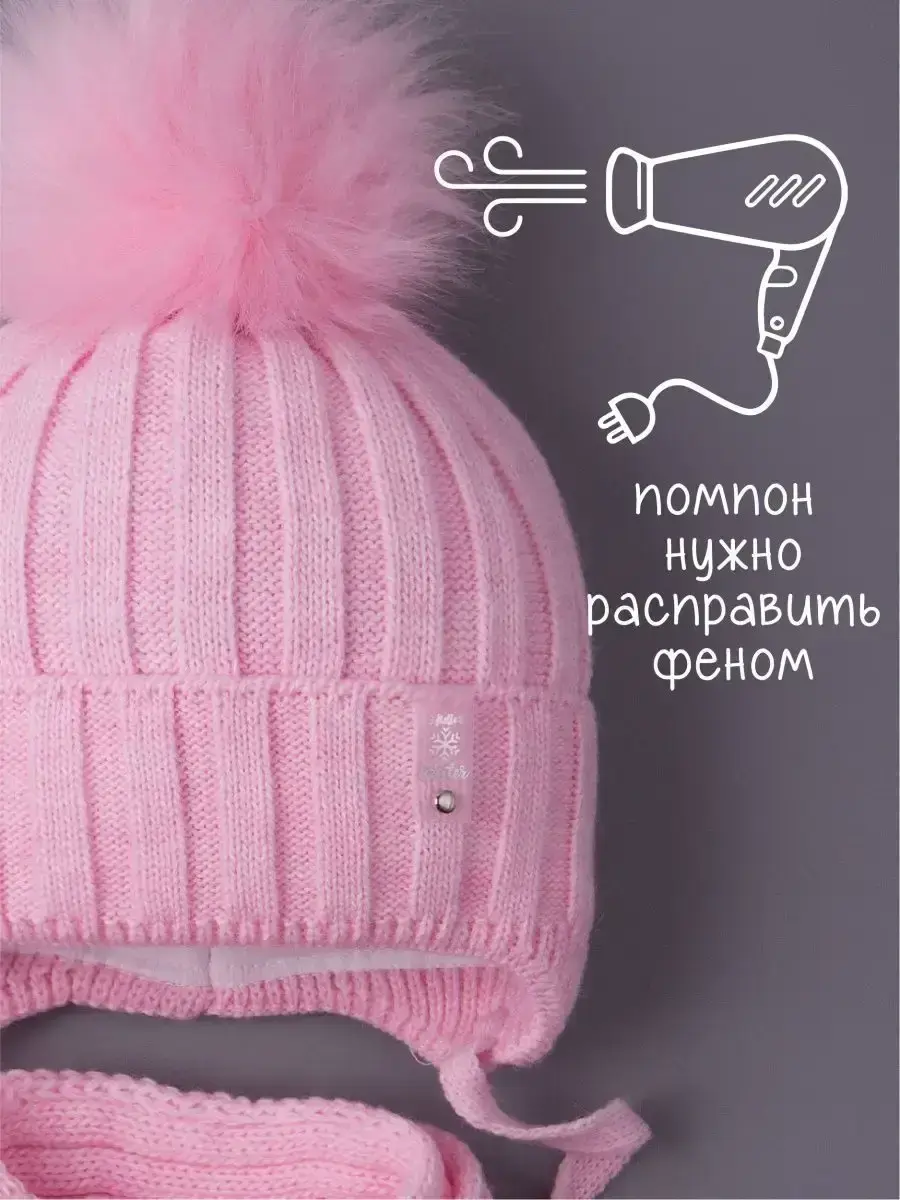 Шапка детская в комплекте с шарфом - это отличное решение на зиму и холодную осень. Вязаная теплая шапочка для девочки с отворотом и шарфик с помпонами красиво дополнят и завершат образ! Модель подойдет к любому гардеробу девочки, благодаря большому выбору расцветок. Она надежно защищает ушки и голову вашего малыша от холода и ветра. Удобная модель с завязками позволяет надежно фиксировать шапку на голове, что особенно важно для активных детей. Демисезонный комплект для детей утеплен синтепоном и согреет даже в морозные дни от -5 до -25С. Шапка для малышей дополнена хлопковой подкладкой, что добавляет комфорта и не дает голове ребенка вспотеть, а значит снижает риск простудиться. Зимняя шапка для малыша с завязками — это идеальный выбор для холодной погоды. Выбирайте качественные детские шапочки и шарфы, чтобы ваш ребенок всегда оставался стильным и защищенным от зимнего холода! Чтобы меховой помпон быстрее распушился его необходимо подержать над горячим паром 2-3 секунды, а затем встряхнуть. Зимний набор для девочки незаменим для озорных детей, любящих активные игры на свежем воздухе. Она надежно защищает ушки и голову вашего малыша от холода и ветра. Удобная модель с завязками позволяет надежно фиксировать шапку на голове ребенка, что особенно важно для активных детей. Высококачественный гипоаллергенный состав пряжи не вызовет раздражения на чувствительной детской коже. Наш зимний набор - шапка с шарфом для девочки - идеальное решение для школы, детского садика и повседневного использования.
