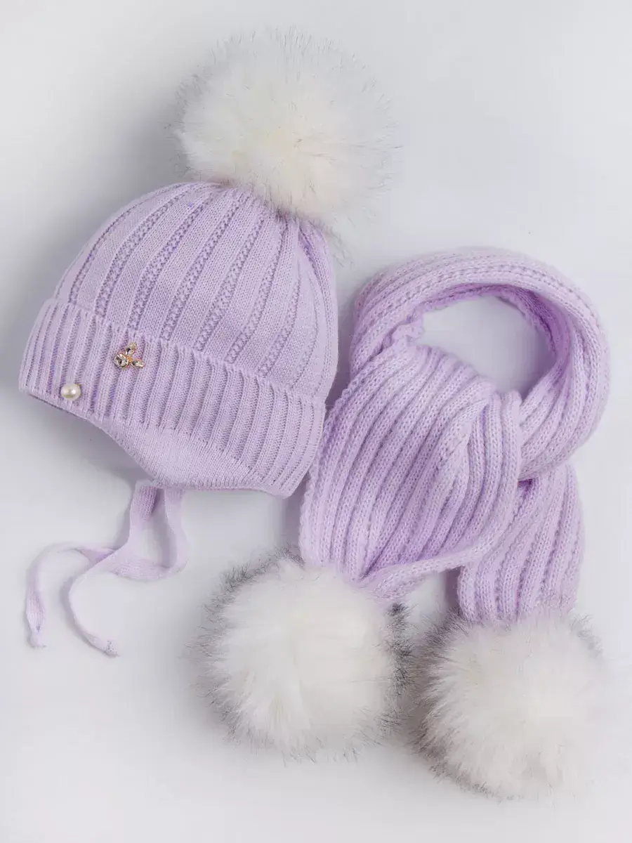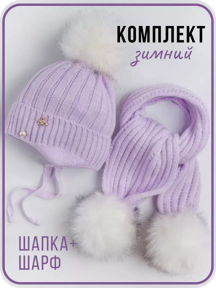 Шапка для девочки в комплекте с шарфом для девочки - это отличное решение для Вашего ребенка на зиму или на холодную осень. Вязаная шапочка с подворотом и шарфик с помпонами настолько теплые и мягкие, что не дадут замерзнуть ребенку даже в сильные морозы. Головной убор демисезонный украшен россыпью из перламутровых бусин, что сделает образ малышки нежным и неповторимым. Шапка для девочки зимняя утеплена подкладкой из хлопка, а плотный отворот хорошо закрывает уши и защищает от ветра. Теплая шапка для детей выполнена из высококачественной гипоаллергенной пряжи, за счет чего она не колется и не вызывает раздражения на нежной коже ребёнка. Чтобы меховой помпон быстрее распушился его необходимо подержать над горячим паром 2-3 секунды и встряхнуть. Шарф для девочки отлично закрывает шею ребенка. Снуд идет в тон шапке, что делает образ завершенным и гармоничным.
