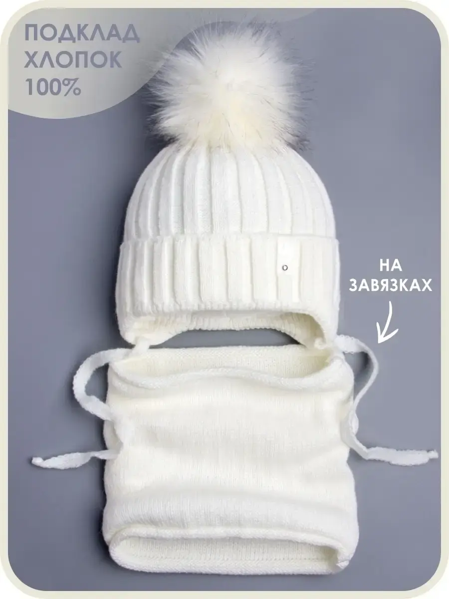 Лучшее решение для зимы - вязаный комплект для девочки из шапки с завязками и снуда! Шапочка детская вязаная и шарф красиво завершат образ юной принцессы! Головной убор декорирован помпоном из искусственного меха и съемной биркой с изображением единорога. Снуд детский легко складывается гармошкой и надевается под капюшон верхней одежды. Он прекрасно тянется и не натирает шею ребенку благодаря качественной обработке краев. Шапка утеплена синтепоном, который спрятан под подкладкой из натурального хлопка. Это обеспечивает дополнительный комфорт и не дает голове малыша вспотеть. Зимний набор согреет в холодную ветреную погоду даже при - 25 С. Мягкое и теплое полотно сохранит первоначальную форму даже после долгой носки. Гипоаллергенный материал не вызовет раздражения на чувствительной коже. Cнуд и шапку от российского бренда РусБубон можно носить как вместе, так и совмещать с другими аксессуарами. Рекомендуем бережную стирку при 30 градусах. Сделано в России!