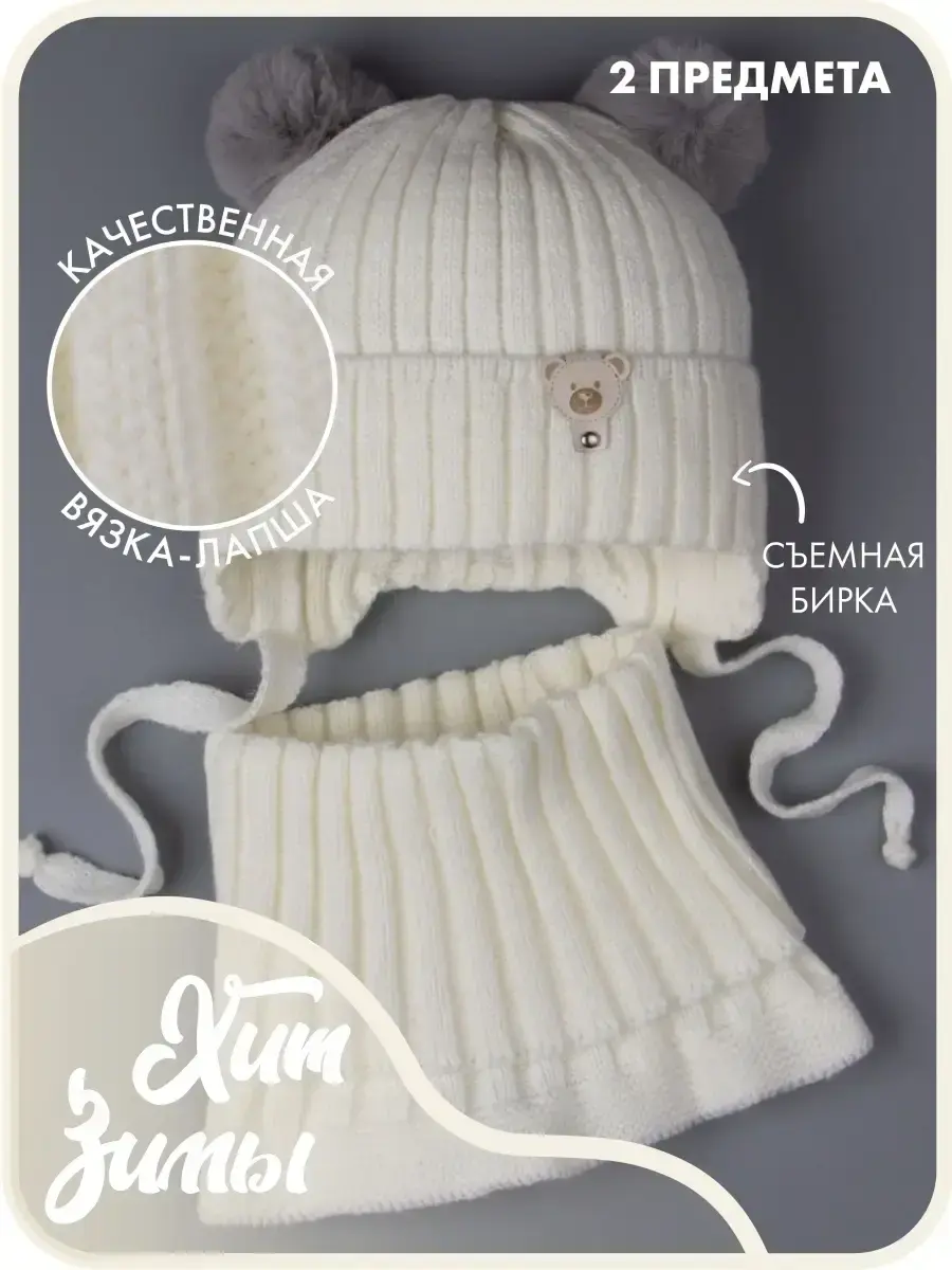 Шапка зимняя детская и снуд станут стильным дополнением к образу Вашего ребенка! Подойдет мальчикам и девочкам. Вязаный комплект выполнен из высококачественной мягкой пряжи, которая хорошо сохраняет тепло, не колется и не вызывает раздражения. Головной убор детский представлен в широкой цветовой линейке и отлично сочетается с любым гардеробом. Шапочка детская утеплена синтепоном, который спрятан под хлопковой подкладкой, поэтому находиться в ней в самые морозные дни Вашему малышу будет комфортно. Большой размерный ряд рассчитан для детей от трех месяцев до десяти лет. Декорировано изделие модной съемной брошью с изображением звездочки и двумя бубонами в виде ушек, что придает настроения и не оставляет равнодушными окружающих. Осеннюю шапку детскую можно носить как вместе со снудом из комплекта, так и совмещать с другими аксессуарами. Набор не колется и не натирает кожу ребенка, отлично подходит для прогулок и активного отдыха на свежем воздухе. В каталог нашего магазина представлен большой выбор головных уборов для детей и взрослых на любой сезон!
