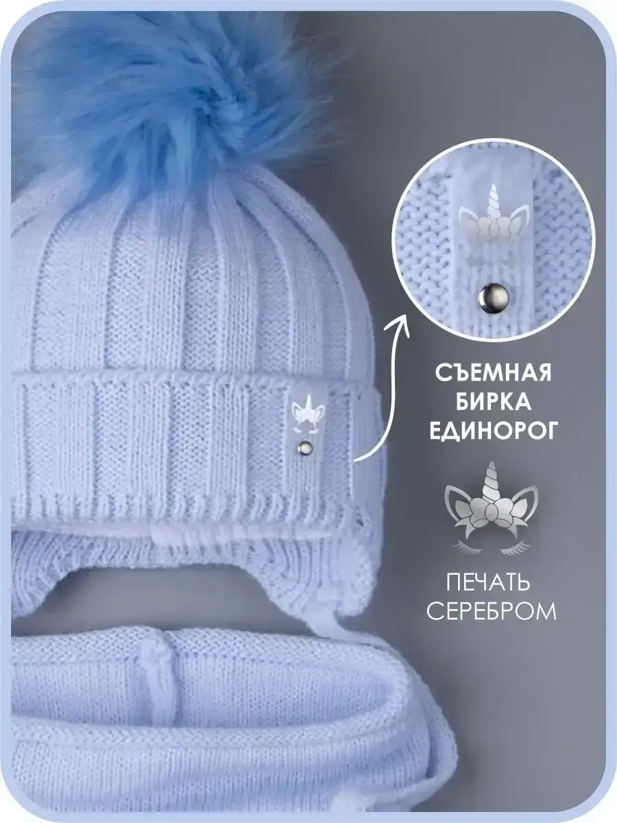Лучшее решение для зимы - вязаный комплект для девочки из шапки с завязками и снуда! Шапочка детская вязаная и шарф красиво завершат образ юной принцессы! Головной убор декорирован помпоном из искусственного меха и съемной биркой с изображением единорога. Снуд детский легко складывается гармошкой и надевается под капюшон верхней одежды. Он прекрасно тянется и не натирает шею ребенку благодаря качественной обработке краев. Шапка на завязках утеплена синтепоном, который спрятан под подкладкой из натурального хлопка. Это обеспечивает дополнительный комфорт и не дает голове малыша вспотеть. Зимний набор согреет в холодную ветреную погоду даже при - 25 С. Мягкое и теплое полотно сохранит первоначальную форму даже после долгой носки. Гипоаллергенный материал не вызовет раздражения на чувствительной коже. Cнуд и шапку от российского бренда РусБубон можно носить как вместе, так и совмещать с другими аксессуарами. Рекомендуем бережную стирку при 30 градусах. Сделано в России!