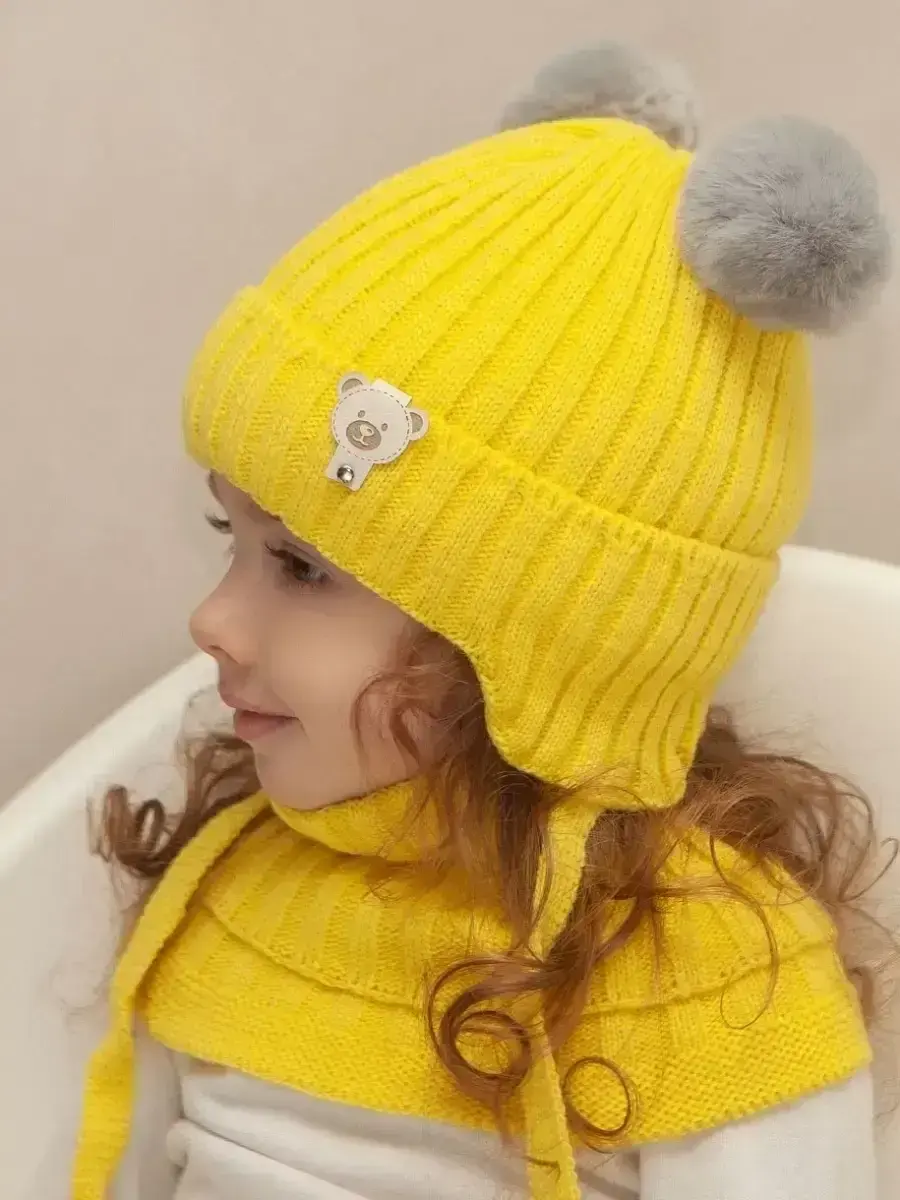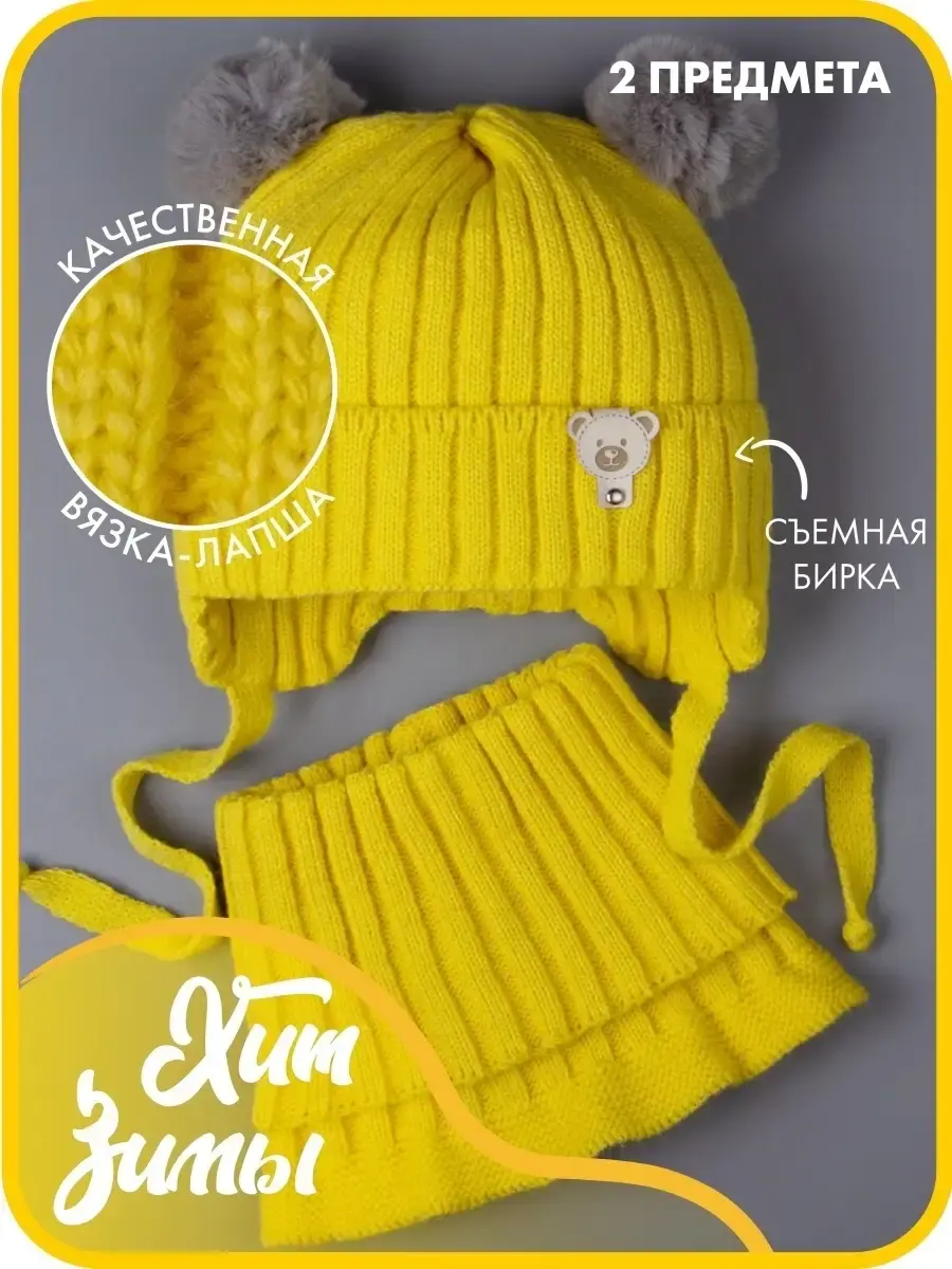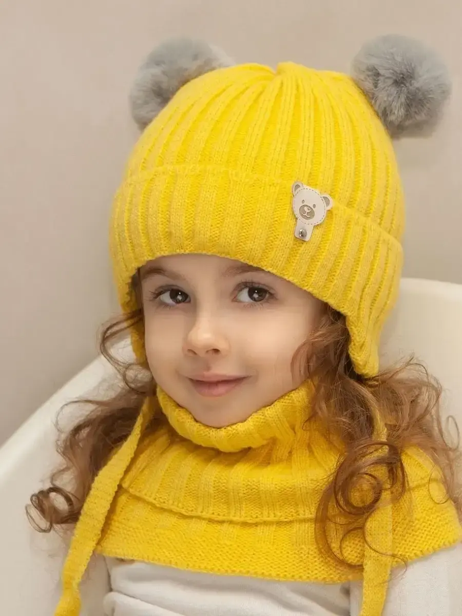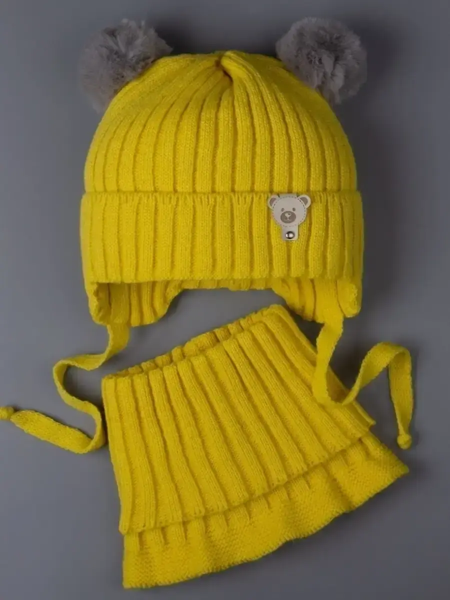 Шапка зимняя детская и снуд станут стильным дополнением к образу Вашего ребенка! Подойдет мальчикам и девочкам. Вязаный комплект выполнен из высококачественной мягкой пряжи, которая хорошо сохраняет тепло, не колется и не вызывает раздражения. Головной убор детский представлен в широкой цветовой линейке и отлично сочетается с любым гардеробом. Шапочка детская утеплена синтепоном, который спрятан под хлопковой подкладкой, поэтому находиться в ней в самые морозные дни Вашему малышу будет комфортно. Большой размерный ряд рассчитан для детей от трех месяцев до десяти лет. Декорировано изделие модной съемной брошью с изображением звездочки и двумя бубонами в виде ушек, что придает настроения и не оставляет равнодушными окружающих. Осеннюю шапку детскую можно носить как вместе со снудом из комплекта, так и совмещать с другими аксессуарами. Набор не колется и не натирает кожу ребенка, отлично подходит для прогулок и активного отдыха на свежем воздухе. В каталог нашего магазина представлен большой выбор головных уборов для детей и взрослых на любой сезон!