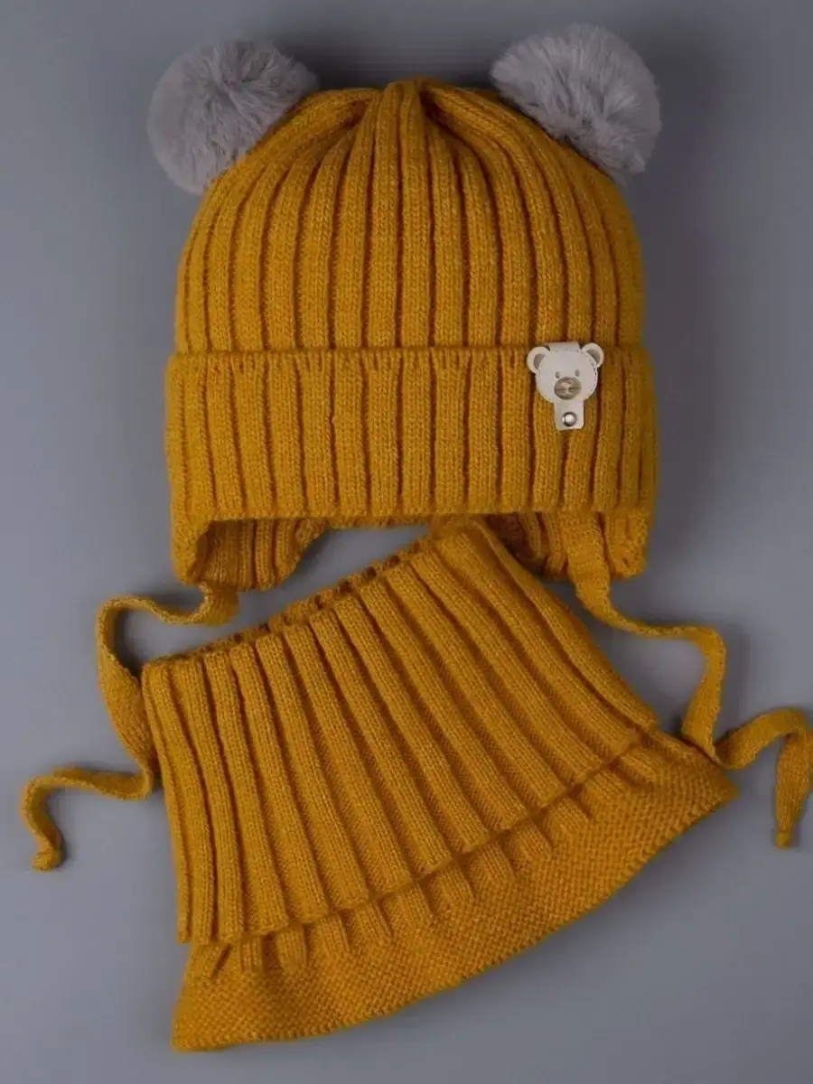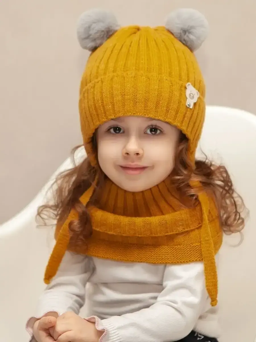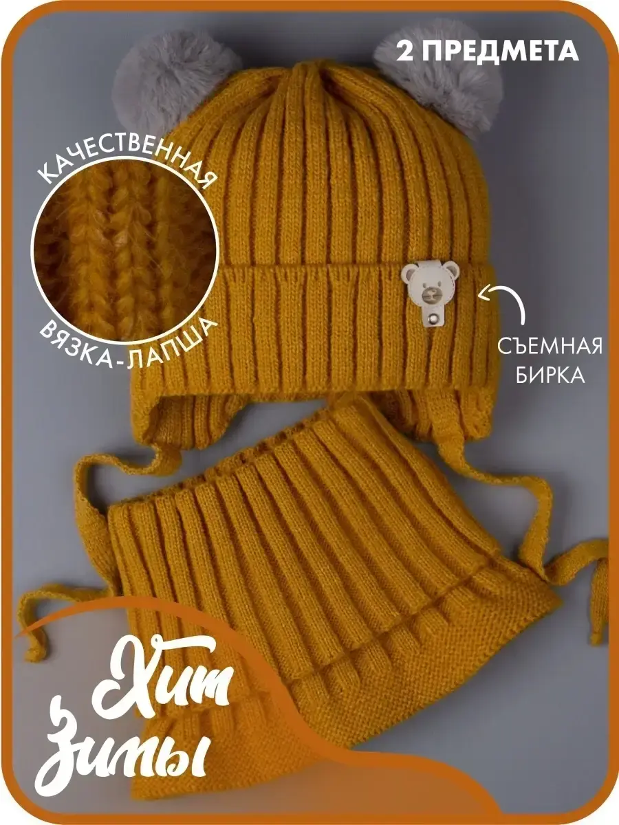 Шапка зимняя детская и снуд станут стильным дополнением к образу Вашего ребенка! Подойдет мальчикам и девочкам. Вязаный комплект выполнен из высококачественной мягкой пряжи, которая хорошо сохраняет тепло, не колется и не вызывает раздражения. Головной убор детский представлен в широкой цветовой линейке и отлично сочетается с любым гардеробом. Шапочка детская утеплена синтепоном, который спрятан под хлопковой подкладкой, поэтому находиться в ней в самые морозные дни Вашему малышу будет комфортно. Большой размерный ряд рассчитан для детей от трех месяцев до десяти лет. Декорировано изделие модной съемной брошью с изображением звездочки и двумя бубонами в виде ушек, что придает настроения и не оставляет равнодушными окружающих. Осеннюю шапку детскую можно носить как вместе со снудом из комплекта, так и совмещать с другими аксессуарами. Набор не колется и не натирает кожу ребенка, отлично подходит для прогулок и активного отдыха на свежем воздухе. В каталог нашего магазина представлен большой выбор головных уборов для детей и взрослых на любой сезон!