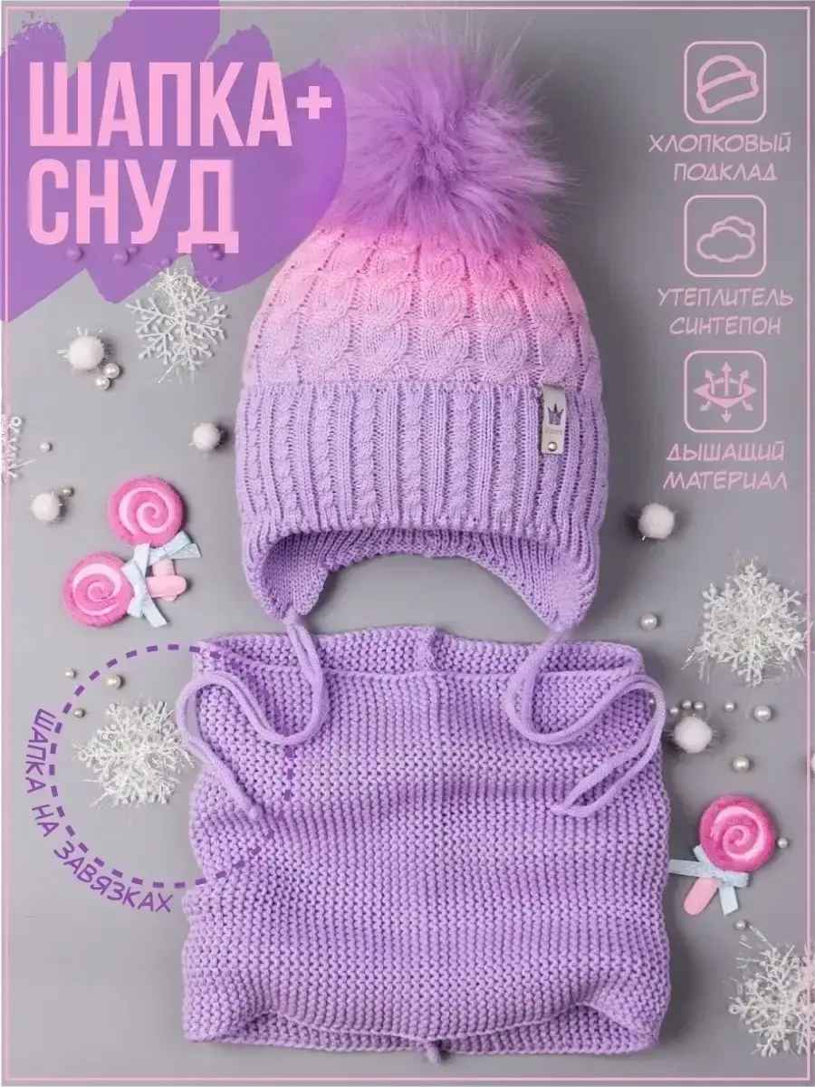 Шапка детская для девочки в комплекте со снудом - это отличное решение на зиму и холодную осень. Легкая, но теплая вязаная зимняя шапочка отлично защитит от ветра и согреет ребёнка даже в самую морозную погоду при -25 С. Головной убор детский утеплен синтепоном, который спрятан под хлопковой подкладкой, благодаря которой голова ребенка не будет потеть. Снуд детский прекрасно тянется, не колется и хорошо растягивается. Его удобно носить как под верхней одеждой, так и заправив под капюшон, заменив им классический шарф. Большое разнообразие цветов поможет выбрать зимний комплект под любой наряд Вашей малышки. Оригинальная брошка с короной легко отстегивается на время ухода за изделием. Красивый помпон из искусственного меха мы рекомендуем распушить феном для придания объёма. Наш зимний комплект для девочки просто незаменим для школы, детского сада и прогулок на свежем воздухе. В фотографиях мы прикрепили удобную таблицу, с помощью которой Вы легко сможете подобрать подходящий размер согласно возрасту и объему головы. Модель выполнена из высококачественной пряжи (в составе акрил), поэтому сохранит первоначальный внешний вид и форму даже после множества стирок. Не упустите возможность порадовать своего ребенка таким практичным и красивым комплектом этой зимой. Сделано в России.