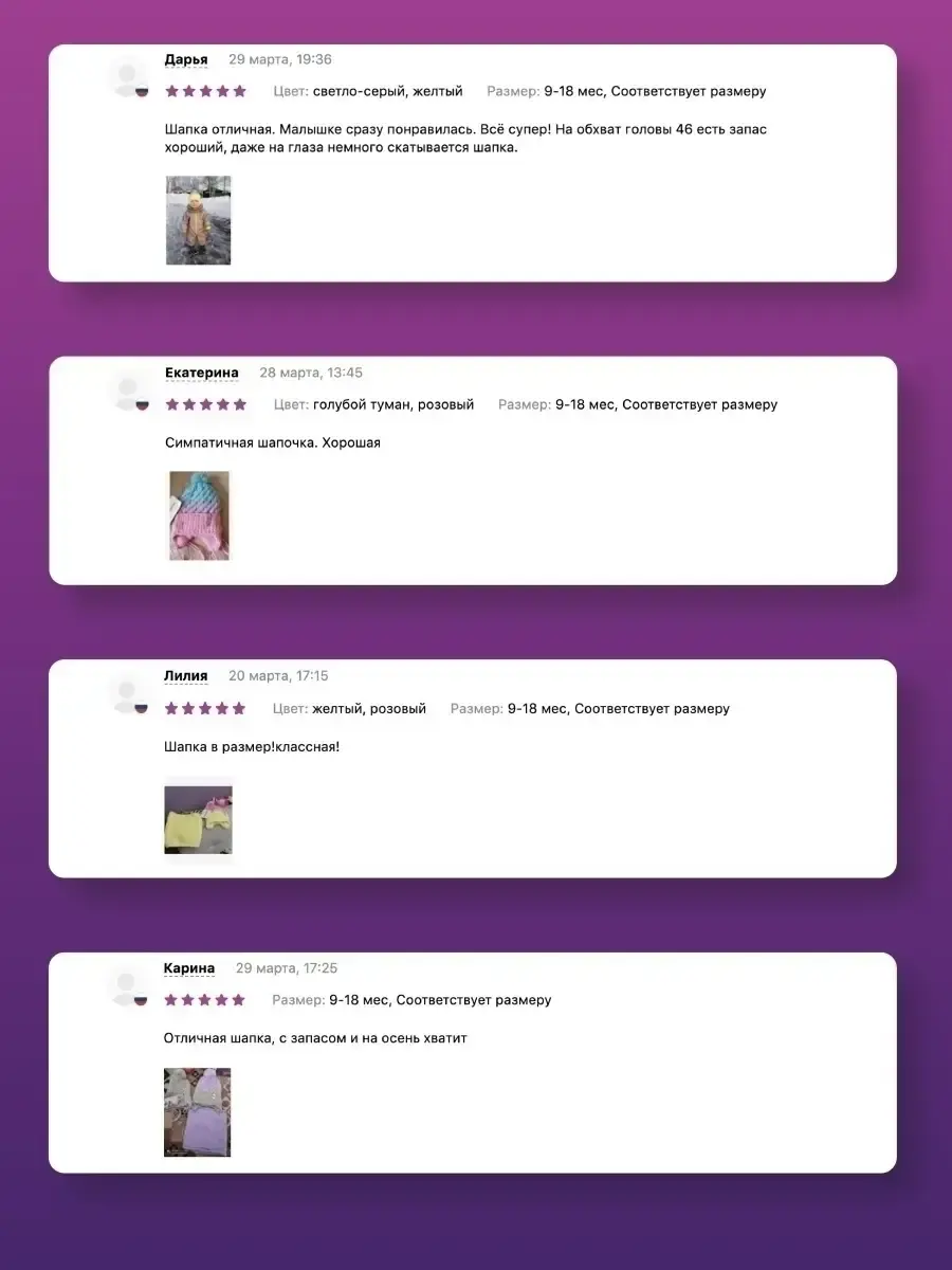 Премиум качества позволяет шапочке долго сохранять яркость и форму, при условии бережного ухода (стирка при t не более 30 С). Сделано в России с любовью.