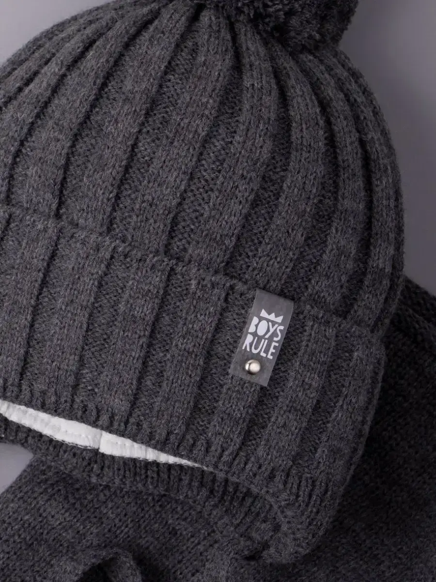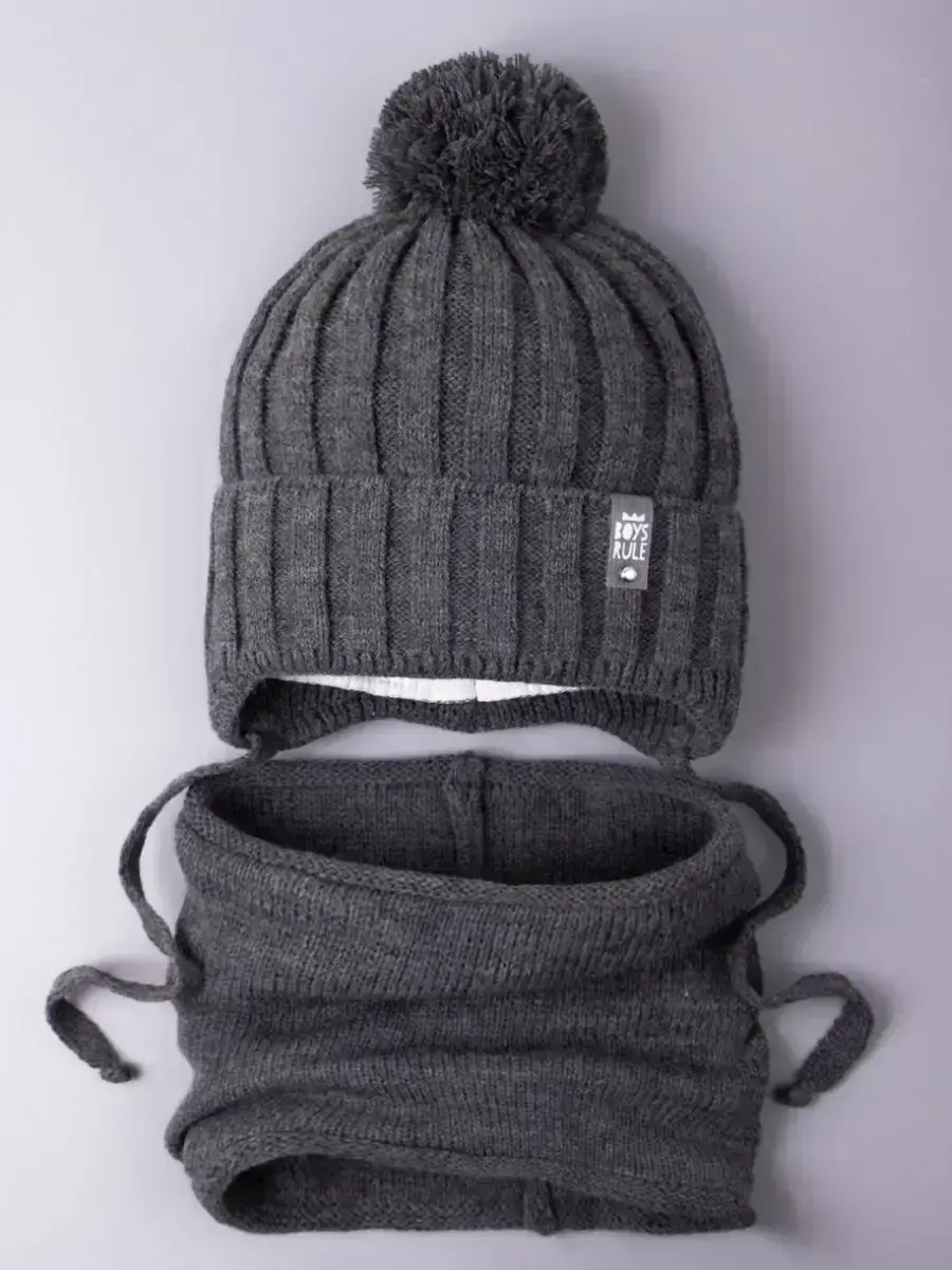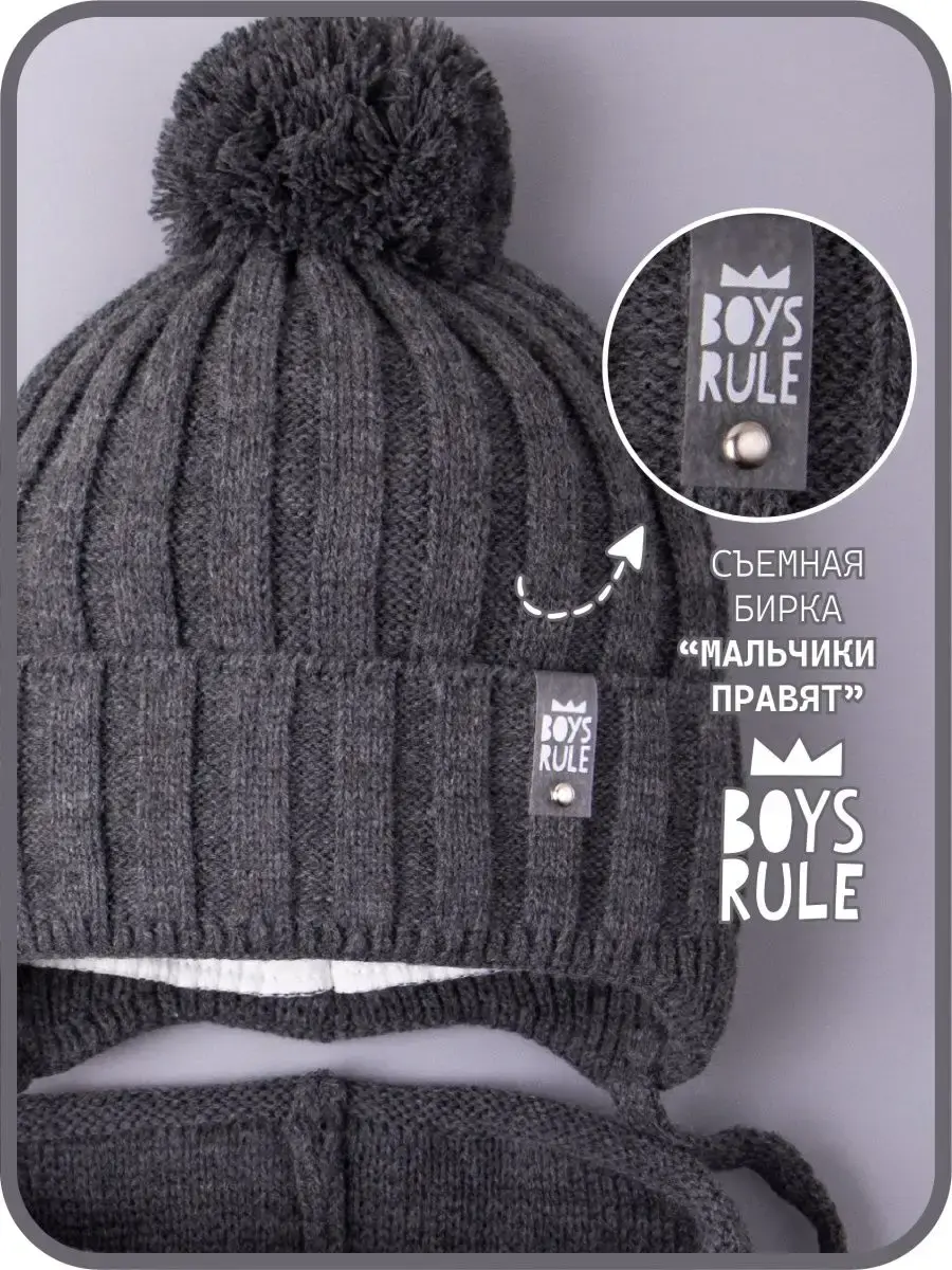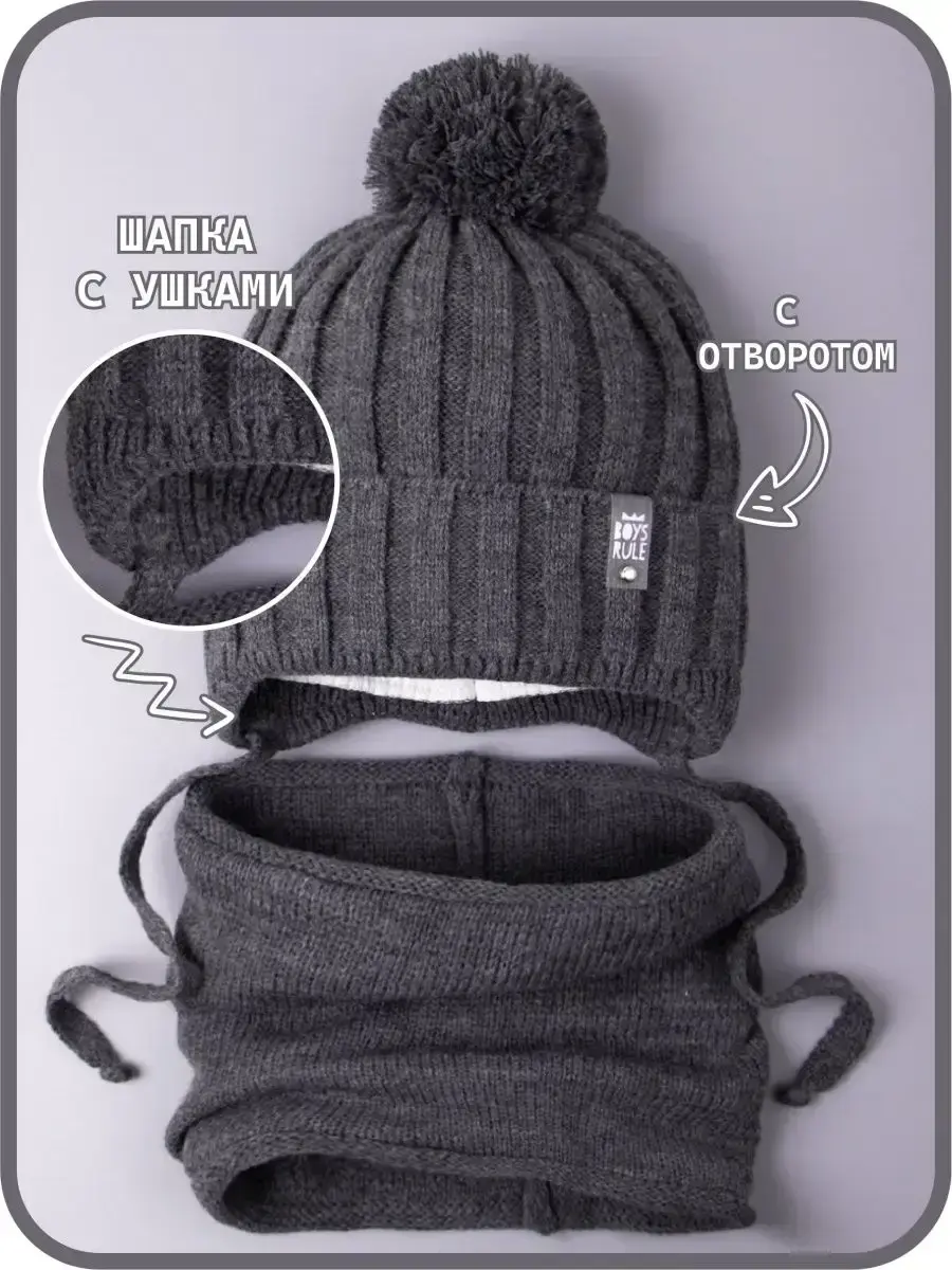 Шапка детская для мальчика и снуд- это отличный вариант холодной погоды на осень и на теплую зиму. Шапка демисезонная с завязками подойдет как для малышей с шести месяцев, так и для детей постарше. Вязаная шапочка дополнена подкладом из натурального хлопка, благодаря чему голова ребенка не будет потеть, а находиться в ней во время долгих прогулок будет комфортно. Широкий отворот теплой плотно прилегает к голове, закрывает уши и защищает от холода. Головной убор декорирован стильной биркой с надписью BOYS RULE. На время ухода за изделием ее можно легко отстегнуть. Снуд детский для мальчика - это удобная альтернатива шарфу или манишке, он хорошо тянется и защищает шею ребенка от холода. Благодаря качественной вязке он легко регулируется по ширине, а его длина подходит даже для самого объемного капюшона. Шапка для малышей выполнена в самых трендовых цветах этого сезона. Комплект отлично впишется в гардероб Вашего ребенка и прекрасно дополнят образ. Рекомендуемый температурный режим от +5 до -10 С. Набор изготовлен из пряжи высокого качества, которая не растянется и не потеряет форму даже после множества стирок. Он не скатывается, не магнитится, не продувает. Для того, чтобы изделие прослужило Вам как можно дольше, мы рекомендуем ручную или машинную бережную стирку при t не более 30 С.