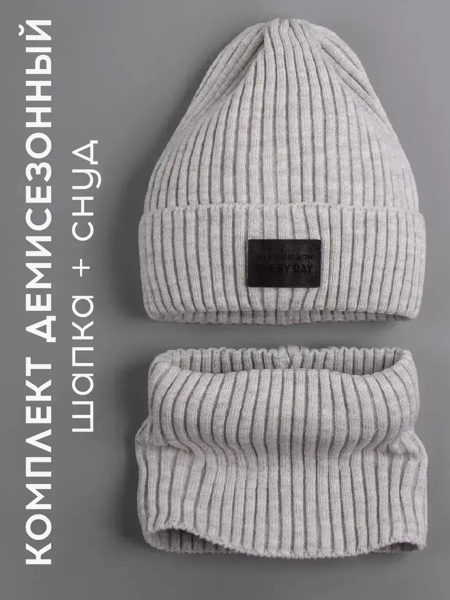 Шапка детская и снуд из плотного трикотажа станут прекрасным вариантом для детей на осень и теплую зиму. Демисезонный дуэт создаст неповторимый образ, а его универсальный дизайн подойдет как для мальчика, так и для девочки.