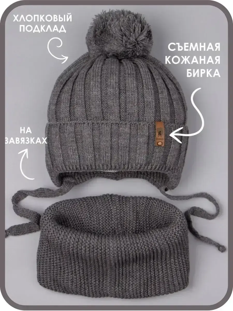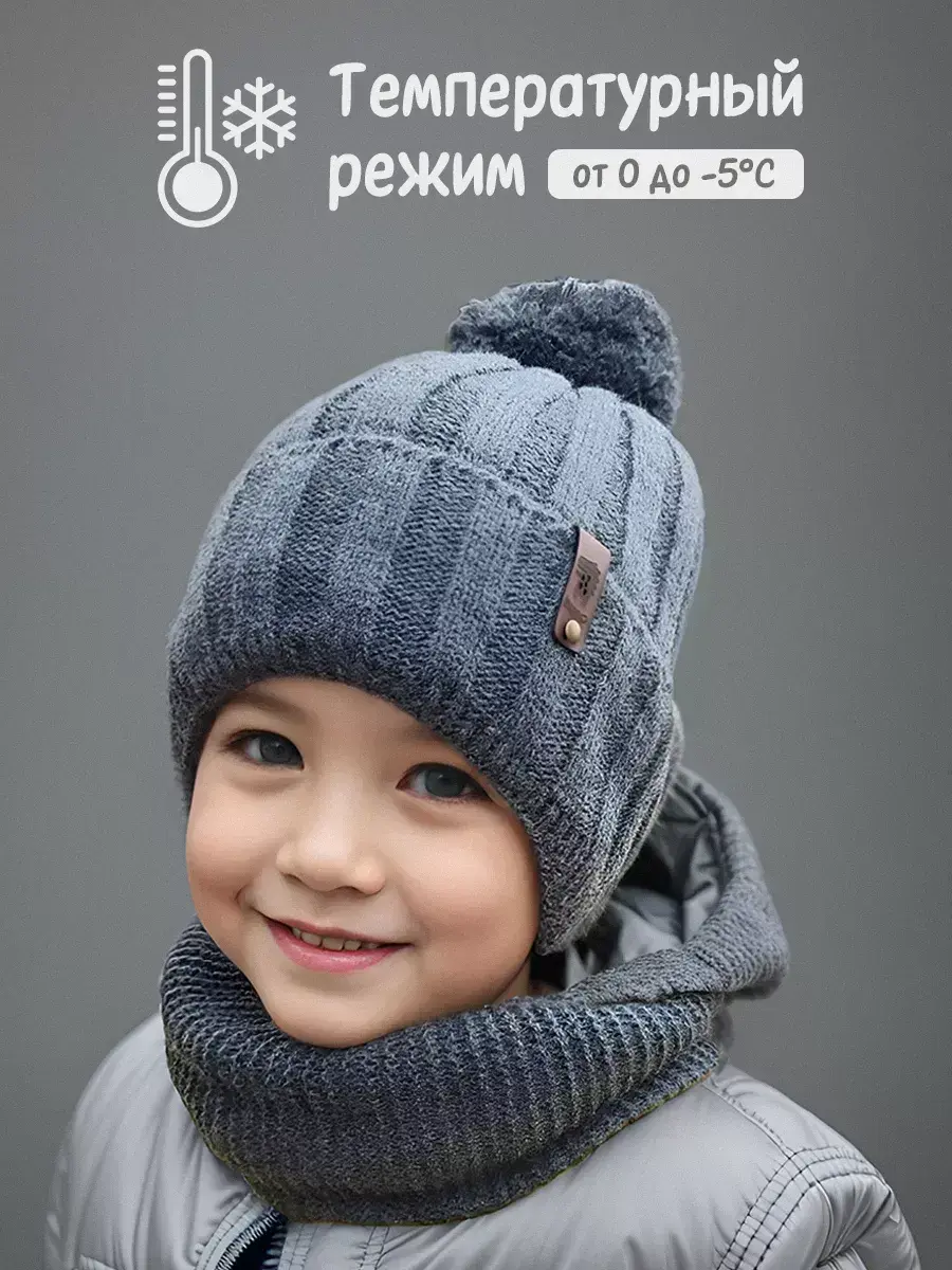 Шапка детская вязаная и снуд - это отличный вариант холодной погоды на осень, а также на теплую зиму. Шапка для мальчика с завязками подойдет как для малышей с шести месяцев, так и для детей постарше (подростков).