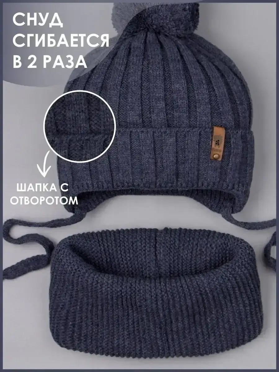 Шапка детская вязаная и снуд - это отличный вариант холодной погоды на осень, а также на теплую зиму. Шапка для мальчика с завязками подойдет как для малышей с шести месяцев, так и для детей постарше (подростков).