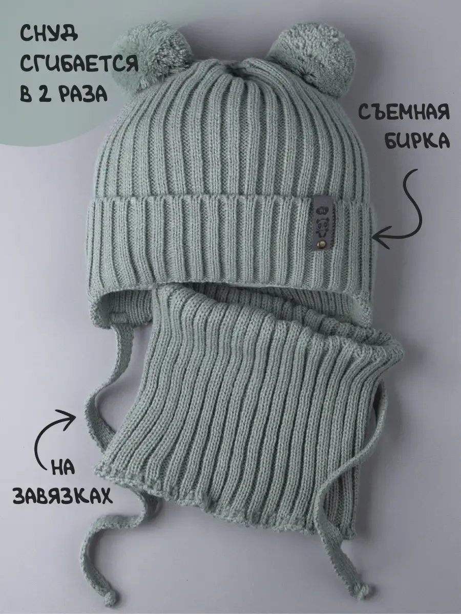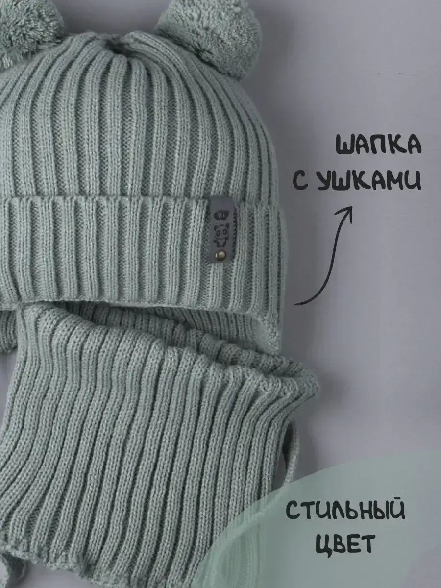 Шапка детская для мальчика и снуд - это самый подходящий вариант на осень и теплую зиму. Комплект демисезонный детский представлен в нескольких размерах для детей от шести месяцев до 10 лет. Шапочка осенняя дополнена подкладкой из натурального хлопка, поэтому Вашему ребенку будет в ней очень тепло и комфортно в любую погоду, а голова не будет потеть. Шапка для мальчика хорошо защищает уши малыша от холода и ветра, благодаря широкому отвороту. Мягкие завязки прекрасно фиксируют ее на голове, не передавливая и не оставляя следов на чувствительной коже. Модель с ушками декорирована двумя помпонами и съемной прозрачной биркой с изображением панды. Изделие представлено в самых модных цветах этого сезона, поэтому его легко комбинировать с любым гардеробом вашего малыша. Головной убор осенний изготовлен из пряжи высокого качества (акрил), он не растянется и не потеряет форму даже после длительного использования. Набор для детей рассчитан на температурный режим от +0 до -5 С, что делает его идеальным для межсезонья - когда в детской зимней шапке слишком жарко, а надевать трикотажную еще рано. Отлично подойдет для активного отдыха на свежем воздухе и повседневной носки в садик и школу. Чтобы изделие радовало Вас дольше, мы рекомендуем бережную стирку при t не более 30С. Сушить шапку необходимо на горизонтальной поверхности. Приятных Вам покупок!