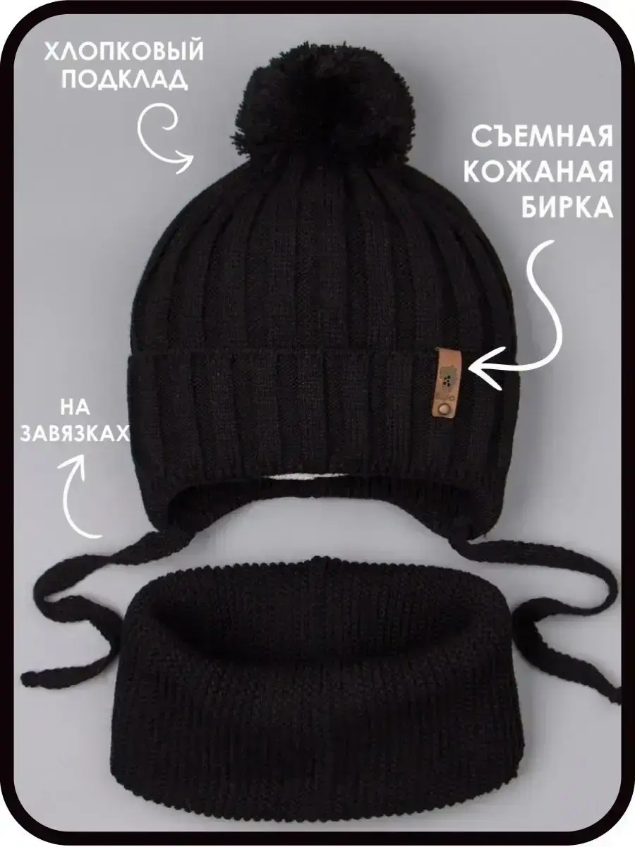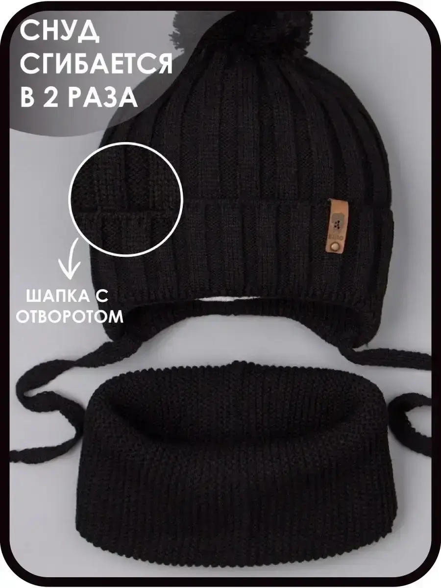 Шапка детская вязаная и снуд - это отличный вариант холодной погоды на осень, а также на теплую зиму. Шапка для мальчика с завязками подойдет как для малышей с шести месяцев, так и для детей постарше (подростков).