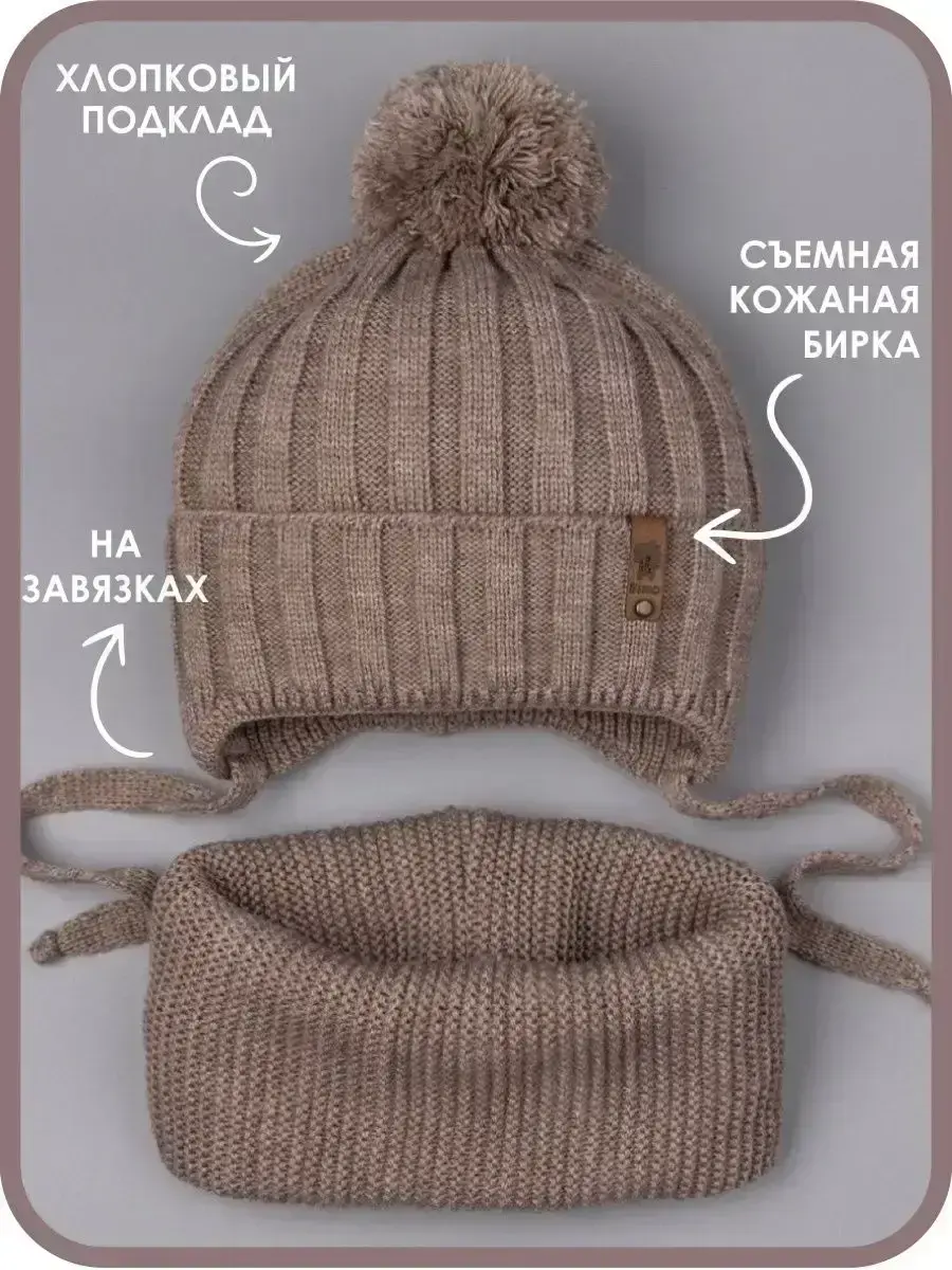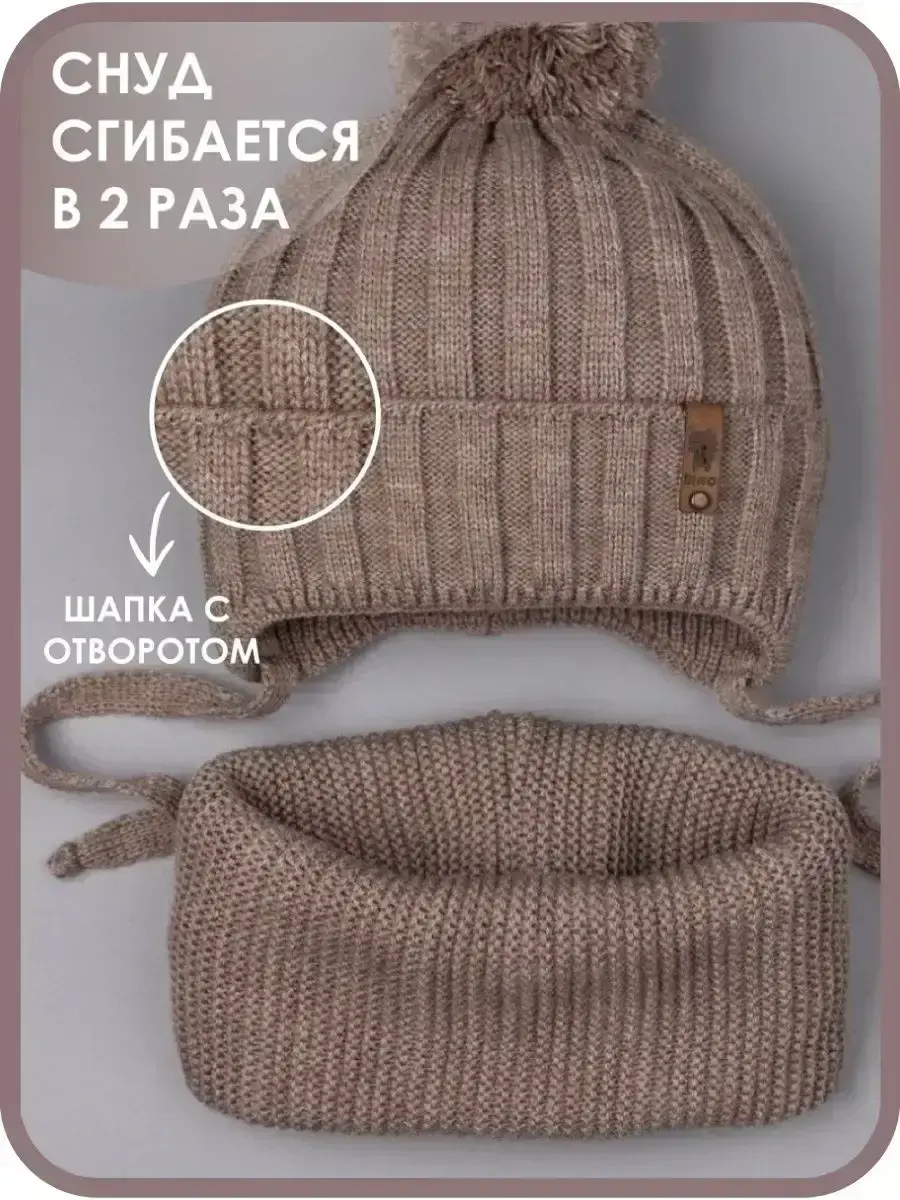 Шапка детская вязаная и снуд - это отличный вариант холодной погоды на осень, а также на теплую зиму. Шапка для мальчика с завязками подойдет как для малышей с шести месяцев, так и для детей постарше (подростков).