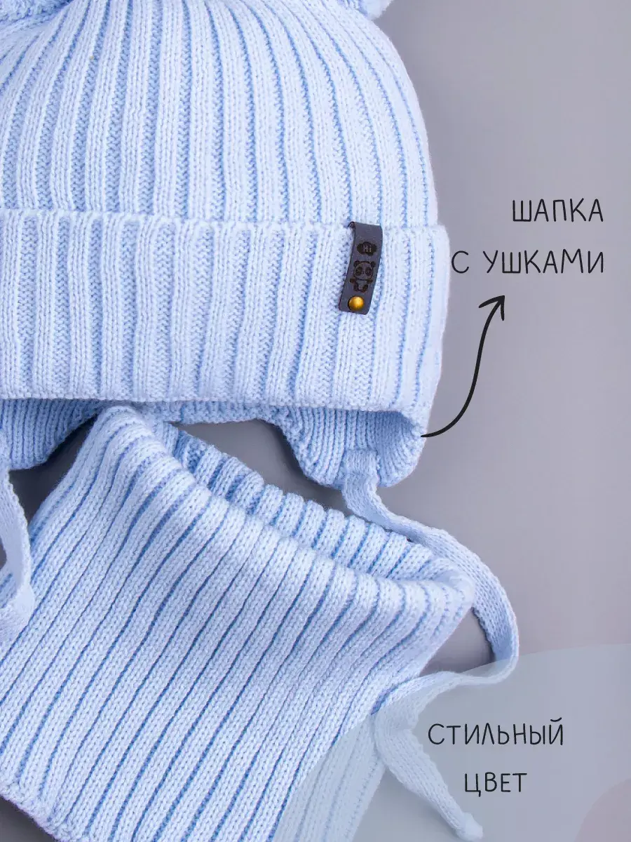 Шапка детская для мальчика и снуд - это самый подходящий вариант на осень и теплую зиму. Комплект демисезонный детский представлен в нескольких размерах для детей от шести месяцев до 10 лет. Шапочка осенняя дополнена подкладкой из натурального хлопка, поэтому Вашему ребенку будет в ней очень тепло и комфортно в любую погоду, а голова не будет потеть. Шапка для мальчика хорошо защищает уши малыша от холода и ветра, благодаря широкому отвороту. Мягкие завязки прекрасно фиксируют ее на голове, не передавливая и не оставляя следов на чувствительной коже. Модель с ушками декорирована двумя помпонами и съемной прозрачной биркой с изображением панды. Изделие представлено в самых модных цветах этого сезона, поэтому его легко комбинировать с любым гардеробом вашего малыша. Головной убор осенний изготовлен из пряжи высокого качества (акрил), он не растянется и не потеряет форму даже после длительного использования. Набор для детей рассчитан на температурный режим от +0 до -5 С, что делает его идеальным для межсезонья - когда в детской зимней шапке слишком жарко, а надевать трикотажную еще рано. Отлично подойдет для активного отдыха на свежем воздухе и повседневной носки в садик и школу. Чтобы изделие радовало Вас дольше, мы рекомендуем бережную стирку при t не более 30С. Сушить шапку необходимо на горизонтальной поверхности. Приятных Вам покупок!