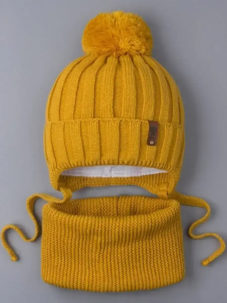 Шапка детская вязаная и снуд - это отличный вариант холодной погоды на осень, а также на теплую зиму. Шапка для мальчика с завязками подойдет как для малышей с шести месяцев, так и для детей постарше (подростков).