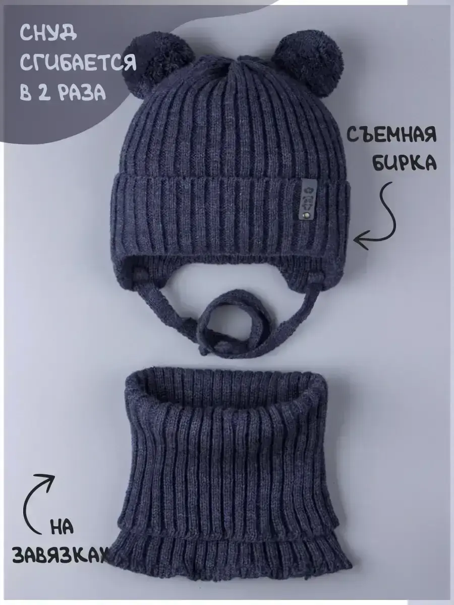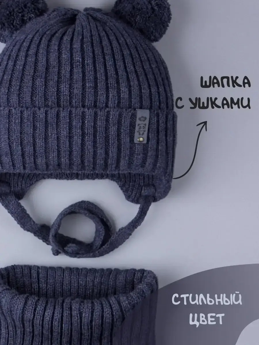 Шапка детская для мальчика и снуд - это самый подходящий вариант на осень и теплую зиму. Комплект демисезонный детский представлен в нескольких размерах для детей от шести месяцев до 10 лет. Шапочка осенняя дополнена подкладкой из натурального хлопка, поэтому Вашему ребенку будет в ней очень тепло и комфортно в любую погоду, а голова не будет потеть. Шапка для мальчика хорошо защищает уши малыша от холода и ветра, благодаря широкому отвороту. Мягкие завязки прекрасно фиксируют ее на голове, не передавливая и не оставляя следов на чувствительной коже. Модель с ушками декорирована двумя помпонами и съемной прозрачной биркой с изображением панды. Изделие представлено в самых модных цветах этого сезона, поэтому его легко комбинировать с любым гардеробом вашего малыша. Головной убор осенний изготовлен из пряжи высокого качества (акрил), он не растянется и не потеряет форму даже после длительного использования. Набор для детей рассчитан на температурный режим от +0 до -5 С, что делает его идеальным для межсезонья - когда в детской зимней шапке слишком жарко, а надевать трикотажную еще рано. Отлично подойдет для активного отдыха на свежем воздухе и повседневной носки в садик и школу. Чтобы изделие радовало Вас дольше, мы рекомендуем бережную стирку при t не более 30С. Сушить шапку необходимо на горизонтальной поверхности. Приятных Вам покупок!