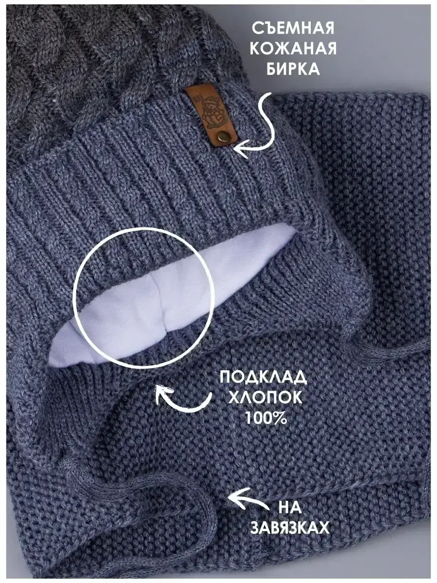 Шапка со снудом для мальчика станет незаменимым элементом на холодную осень и зиму. Эта модель подходит к любому детскому гардеробу благодаря ассортименту цветовых решений. Шапочка вязаная для малышей выполнена из качественной пряжи, обеспечивая комфорт и уют в прохладную погоду. Дизайн шапки для детей продуман до мелочей: она имеет удобные завязки, которые надежно фиксируют головной убор на голове ребенка и предотвращают его соскальзывание. Завязки также позволяют регулировать обхват, обеспечивая идеальную посадку. Верх зимнего детского головного убора украшен стильным бубоном, добавляющим игривости и изюминки в образ вашего ребенка. Изготовленная методом вязания, эта демисезонная шапочка для мальчиков не только сохраняет тепло, но и пропускает воздух, что предотвращает перегрев. Эластичная структура материала делает ее подходящей для детей разного возраста. Снуд детский отлично тянется, его легко надевать и снимать. Благодаря универсальной расцветки детская шапочка со снудом на зиму хорошо сочетаются с любым зимнем и осенним гардеробом. Выбрав нашу зимнюю шапку на завязках детскую с бубоном, вы обеспечите своему ребенку комфорт и тепло в прохладные дни. При этом стильный дизайн головного убора сделает вашего малыша самым модным и очаровательным весной и осенью!
