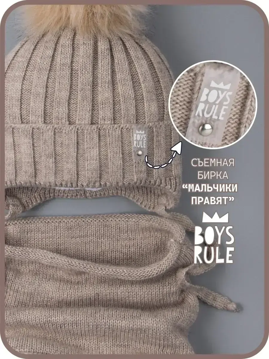 Лучшее решение для зимы - вязаный комплект для мальчика из шапки с завязками и снуда! Шапочка детская вязаная и шарф красиво завершат образ вашего ребенка! Головной убор декорирован помпоном из искусственного меха и съемной биркой. Снуд детский легко складывается гармошкой и надевается под капюшон верхней одежды. Он прекрасно тянется и не натирает шею ребенку благодаря качественной обработке краев. Шапка на завязках утеплена синтепоном, который спрятан под подкладкой из натурального хлопка. Это обеспечивает дополнительный комфорт и не дает голове малыша вспотеть. Зимний набор согреет в холодную ветреную погоду даже при - 25 С. Мягкое и теплое полотно сохранит первоначальную форму даже после долгой носки. Гипоаллергенный материал не вызовет раздражения на чувствительной коже. Cнуд и шапку от российского бренда РусБубон можно носить как вместе, так и совмещать с другими аксессуарами. Рекомендуем бережную стирку при 30 градусах. Сделано в России!