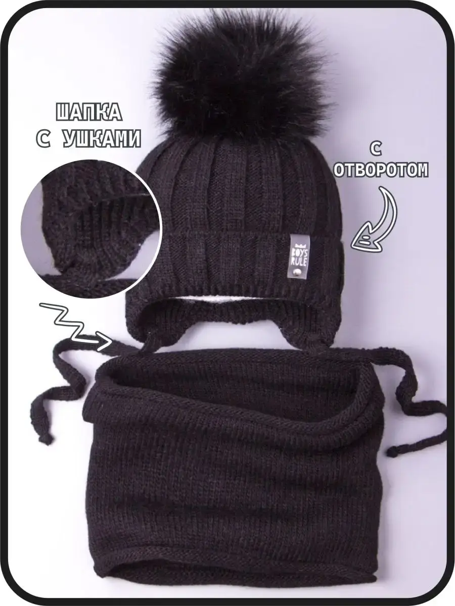 Лучшее решение для зимы - вязаный комплект для мальчика из шапки с завязками и снуда! Шапочка детская вязаная и шарф красиво завершат образ вашего ребенка! Головной убор декорирован помпоном из искусственного меха и съемной биркой. Снуд детский легко складывается гармошкой и надевается под капюшон верхней одежды. Он прекрасно тянется и не натирает шею ребенку благодаря качественной обработке краев. Шапка на завязках утеплена синтепоном, который спрятан под подкладкой из натурального хлопка. Это обеспечивает дополнительный комфорт и не дает голове малыша вспотеть. Зимний набор согреет в холодную ветреную погоду даже при - 25 С. Мягкое и теплое полотно сохранит первоначальную форму даже после долгой носки. Гипоаллергенный материал не вызовет раздражения на чувствительной коже. Cнуд и шапку от российского бренда РусБубон можно носить как вместе, так и совмещать с другими аксессуарами. Рекомендуем бережную стирку при 30 градусах. Сделано в России!